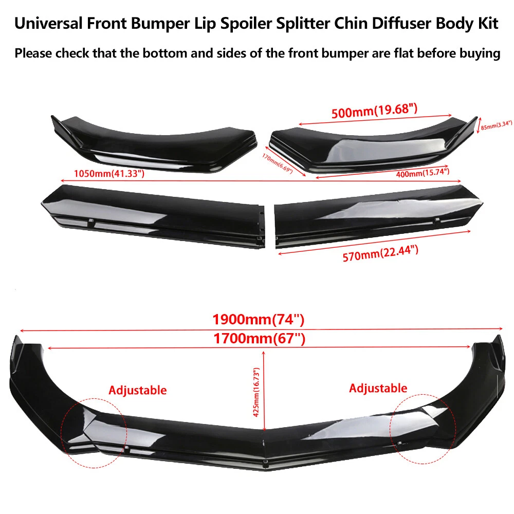 Universal Front Bumper Lip Spoiler Splitter Chin Diffuser Body Kit + Strut Rod Please check that the bottom and sides of the front bumper are flat before buying,avoid installation failure Suitable vehicle type: Fits for car universal: Honda,Toyota,Mazda,Subaru, Volkswagen,Acura,mitsubishi,Cadillac,lexus,Audi,BMW,Mercedes Benz,Ford,VOLVO,Hyundai,Nissan,Infiniti,Buick,Chevrolet,Kia,Dodge (You can contact us if you have any concerns). Feature: Made of Updated durable and sturdy ABS plastic, no deformation in long-term use. Provide an elegant and personalized appearance. Prevent the car from being scraped and improve the level of the decoration of the car. Come with screws, More convenient installation and stable installation. Professional Installation Is Highly Recommended. Specification: Type:Front Bumper Lip Spoiler Splitter Chin Diffuser Body Kit+Strut Rod Material:ABS Color:Black Package Included: 1 x Set Of Front Bumper Lip Spoiler Splitter 1 x Set Of Strut Rod 1 x Bag Of screws Delivery details/Shipping and handing: 1. We will ship your order within 3 working days 2. If you didn't receive the item after 7 days, Please contact us, we'll investigate and solve the delivery problem. If you are satisfied with our service, please leave 5 Stars Rating Thanks! Terms of sales: 1. Please contact us before leaving a Negative feedback if you are not satisfied our service or products. Good communication is helpful for both of us to resolve any problems and issues. We are promising to try our best to provide the best service and 100% satisfaction for valuable buyer like you 2. All of the items are new. If it is not in new conditions, refund is offered. Otherwise, replacement can be offered for defective product. We will exchange or give the seller credit to buyer. 3. Customers are responsible for return shipment fee except for wrong shipment or defective products. About us: If you have any questions, please feel free to email our service specialists 24 Hours a Day, 7 Days a Week, and we will reply you ASAP. If no response within 24 Hours, please check the spam of mail box or kindly re-send it to us. We greatly appreciate your POSITIVE feedback. Please do NOT leave negative feedback without any contact. If you haven't received item in 30 days, please contact us and We will try our best to solve your problem ! We are the professional car decoration dealer, if you would like to make your car a shinny look, please contact us !!!