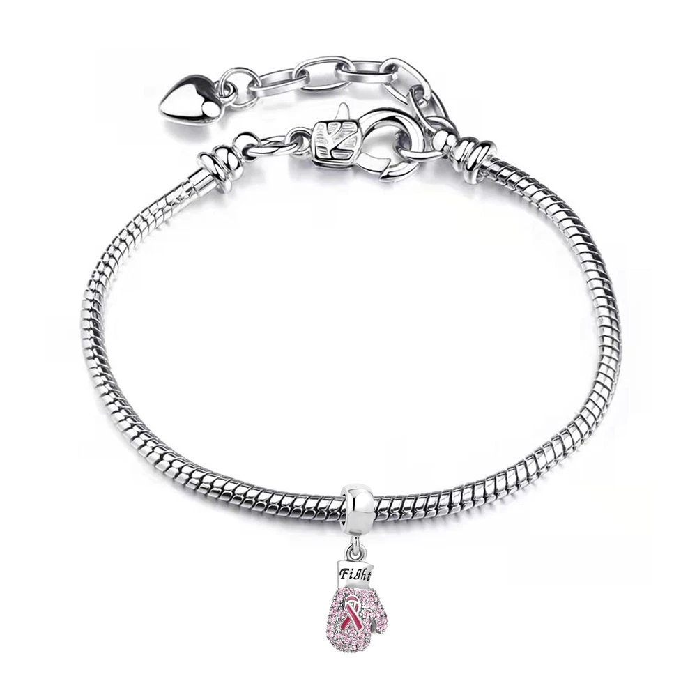 For Charm Bracelet Fight Breast Cancer Awareness Pink Ribbon Boxing Glove