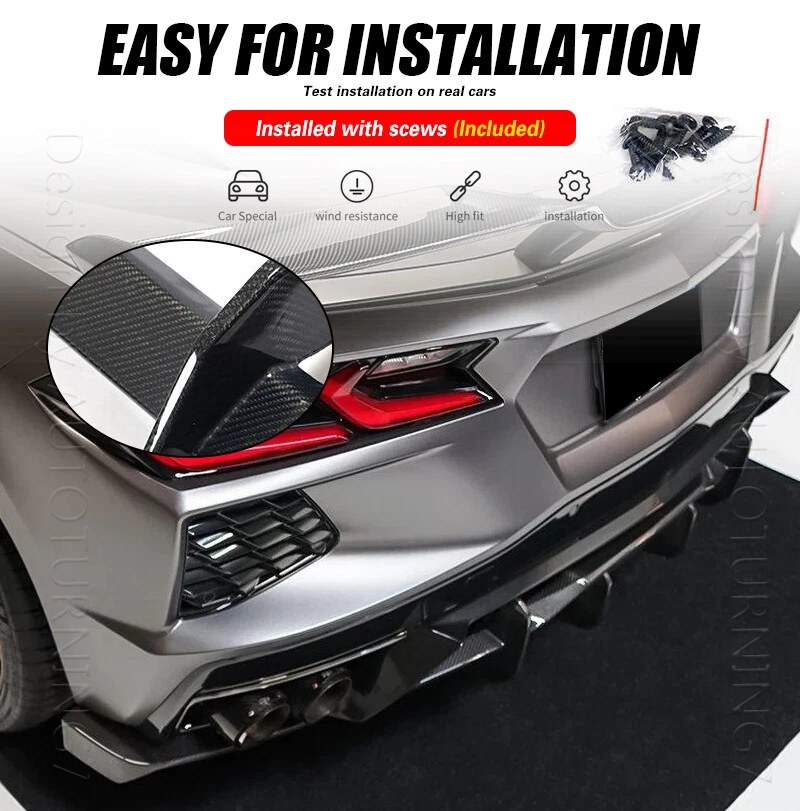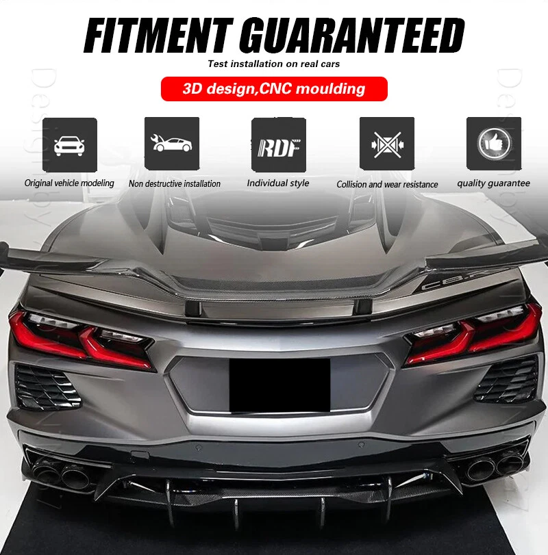Fitment: Fit For Chevrolet Corvette C8 Stingray 2020-2023 Specifications: Product Name: Rear Bumper Lip Material: Carbon Fiber Features: • Made of High Quality Lightweight Carbon Fiber. • Improve the aerodynamic characteristics by enhancing the transition between the high-speed airflow below the vehicle and the free airflow in the surrounding atmosphere. • Provide space for the airflow under the vehicle to decelerate and expand, thereby providing pressure recovery by providing a degree of "wake fill" or more accurately. • Does not cause excessive airflow separation and resistance and keep driving safety. • Sport style rear diffuser, perfect for decoration, increase both road safety and racing style. Package included: • Rear diffuser+splitter fins • Mounting Accessories Carbon Fiber Rear Bumper Lip FOR Chevrolet TheRear Bumper Lip is one of the simplest mods you can do to the exterior of your car that will give your car that completely different look. Not only are spoilers meant for great looks, they also help Prevent the rear of the car from scratching. Fitment: Fit For Chevrolet Corvette C8 Stingray 2020-2023 Specifications: Product Name: Rear Bumper Lip Material: Carbon Fiber Features: • Made of High Quality Lightweight Carbon Fiber. • Improve the aerodynamic characteristics by enhancing the transition between the high-speed airflow below the vehicle and the free airflow in the surrounding atmosphere. • Provide space for the airflow under the vehicle to decelerate and expand, thereby providing pressure recovery by providing a degree of "wake fill" or more accurately. • Does not cause excessive airflow separation and resistance and keep driving safety. • Sport style rear diffuser, perfect for decoration, increase both road safety and racing style. Package included: • Rear diffuser+splitter fins • Mounting Accessories Delivery details Payment and TAX Warranty Policy Return Policy Contact us Delivery details NOTE: The shipping fee is only for the mainland of each country, it does not include the overseas territories, such as Virgin Islands (U.S.) , Puerto Rico, Hawaii , French Reunion Island, etc. But on ebay, when buyers from Puerto Rico and overseas territories , the shipping fee is equal to United States, it is NOT correct,. please contact us for correct shipping fee, or we will cancel the order. Sorry for the inconvenience, and thanks for your cooperation. 1. If you want to upgrade the shipping, please contact us before making payment, we will revise the shipping fee. 2. We will ship according to your Ebay address. Please make sure it is correct and include phone number for delivery. If you want to know the exact shipping time , please contact us . Payment and TAX 1.We accept Multiple Payment Methods Available: Credit Card, Debit Card, Gift Card, Apple Pay, Goggle Pay, PayPal and PayPal Cred. 2.Please leave note for your special request (e.g. Colors or Size) in ebay note when you pay the order. 3.Your must complete the payment within 7 days or Ebay will automatically open unpaid item case For US Buyer:The invoice value of each item is less than 800USD ,so you no need to pay any tariff . NON-US Buyer Note: Most countries are tax free based on our invoices, if tax is required, which will be buyer's responsibility. Warranty Policy We Warranty Our Product Within the Limited Warranty Policy Specified on Ebay. Please Email us if ou have any question regarding the warranty policy on a specific item. Most of the items are Aftermarket Parts and they are intended for off-road usage only, therefore no installation instruction will be included, Professional installation are Highly Recommended. We are not responsible for any damages to the item or the vehicle that occur during the installation of the item.Also, Please Make Sure Proper Installation is Performed as we are not responsible for item being missing or flew off after the installation. if you don't think the item can stay on the car properly, please do not attempt to drive the car with it and please check with professional shops/mechanics or contact us for assistance. Return Policy We Accept Returns Within the Return Period On Ebay. Return Authorization/Return Approval is Required For Every Return. So If you Wish to Make a Return On Your Purchase. Please Contact us Before You Send The item back For any damages occured to the item upon arrival, Please notify us within 5 days of the delivery so we can take proper action to fix the issue. So Please Kindly inspect and check the item condition upon arrival.For Any other Return Inquries, You can contact us within the return period to obtain return authorization/return approval. In case of return, the merchandise needs to be returned in original condition with origi- nal packaging in order to be eligible for an exchange or a refund. Items must be not opened in their original package. Any mark of installation, mounting, cutting, scratch or using will not be allowed. Contact us 1.We are trying our best to explain all details of the products here! If you have any question, please feel free to contact us by Ebay message, and We will get back to you within 24-48 hours. 2.Customer satisfaction is our NO.1 priority. If you are not happy with the item that you purchase, please contact us first. We will try our best to solve the problem with you.Please leave us a positive feedback if you receive the item.Please do not leave negative or neutral feedback without any contact.If you haven't received item in 30 days, please contact us and we will arrange refund.We appreciate your business.Happy Bidding & Have a nice day! 3.Working hours: From 8 a.m. to 6 p.m. from Monday to Friday. From 8 a.m. to 12 a.m. on Saturday morning Holiday/Rest time: Saturday afternoon and Sunday