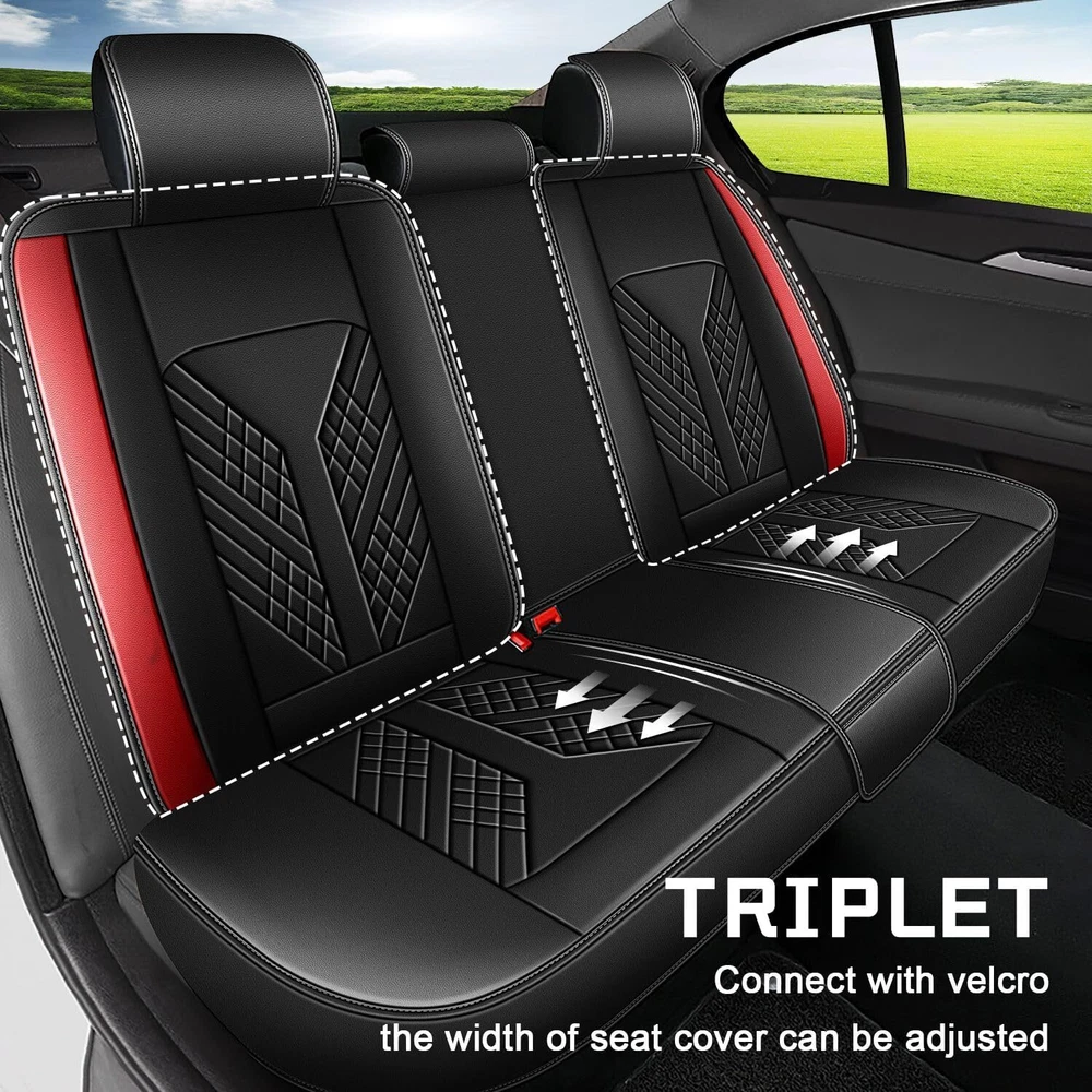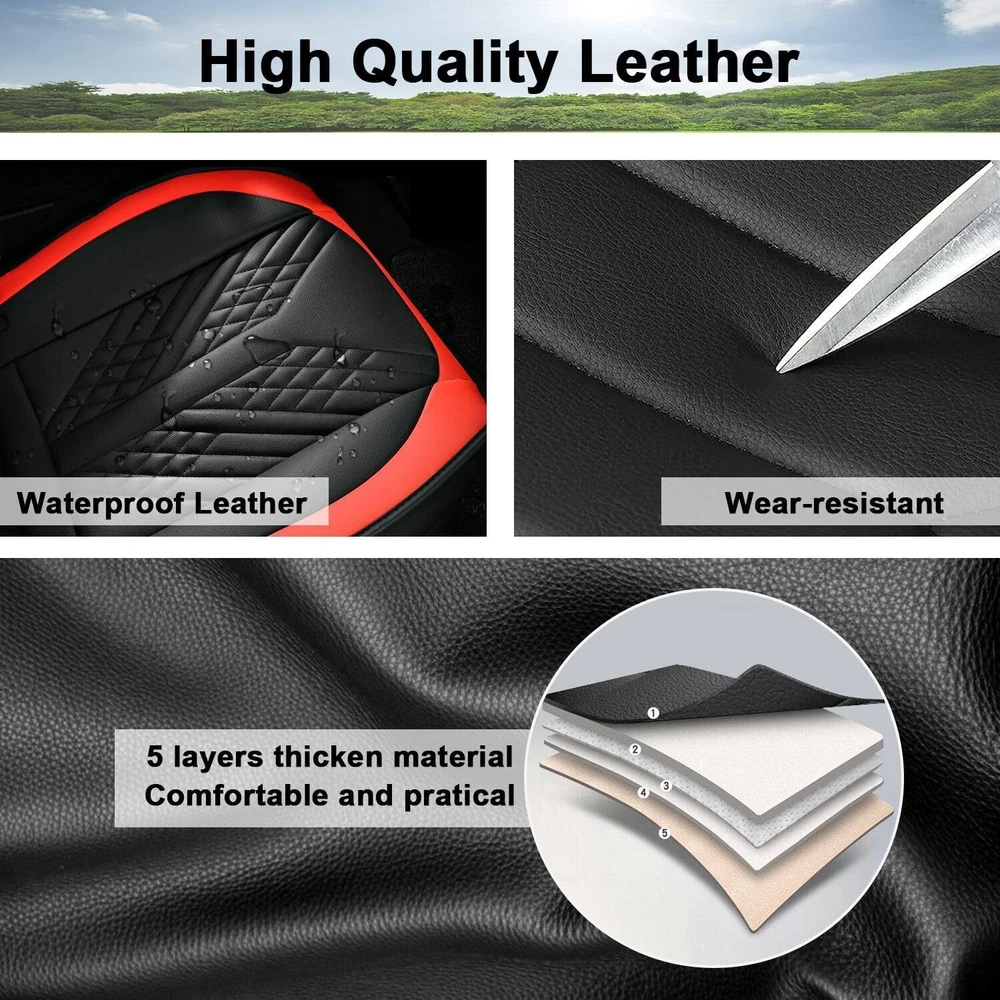 【Notices】 The picture is for reference only, the product will be shipped according to your specific model! After placing the order, please send us an email to inform us of the specific model and seat picture 【Features】 High Quality Seat Covers: Faux leather is durable, breathable, comfortable and has good waterproof. The interior of the seat cover is filled with sponge, the appropriate thickness allows you to sit for a long time without getting tired. Seat Protector Easy to Clean: Environmental protection, no toxic gas volatilization with scratch-resistant leather. Wipe clean easily with just a damp towel, keeping your seat protects from stains, spills and damage. Safety Leather Car Seat Covers: The front seats have airbag reserve ports on the side to ensure that the airbags can be popped out in case of emergency. The rear seat belt slot also completely exposed. Flame retardants are added to the leather, which will not burn even if it encounters a fire. Seat Cover Set Easy Installation: The package comes with an installation manual, please read it before you start the installation and you will be able to do it easily even if it is your first time. 【Specification】 Product Type : Car Seat Cover Color : Black+Red Material : Faux Leather Apllicable season : All seasons Fitment : Fit For Chevrolet Equinox 2011-2024 【Package Include】 2 Front Seat Covers 1 Set of Rear Seat Covers 5 Headrest Covers 1 Bag of Accessories for Installation 1 Intruduction Manual of Installation