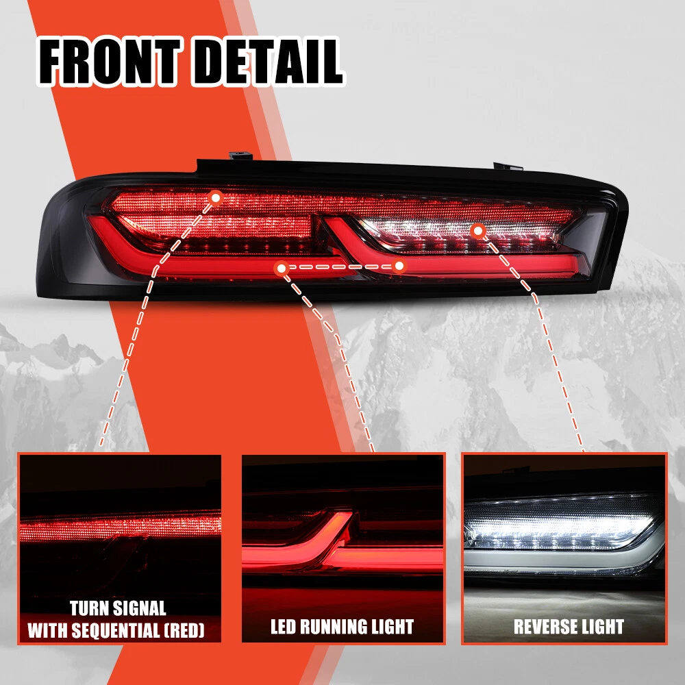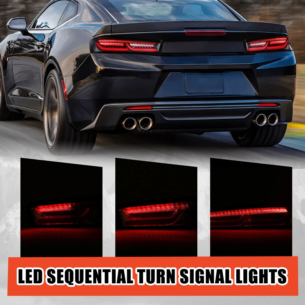 Head Lights Tail Lights Fog Lights Turn Signal Bumper Fender Flare Inner Fender Hubcaps Refrigerator Other Items for sale Head Lights Tail Lights Fog Lights Turn Signal Bumper Fender Flare Inner Fender Liners Portable Refrigerator For Chevy Camaro 2016 2017 20018 Rear Pair LED Sequential Tail lights Smoke Lens Features: 100% brand new,high-quality. Made of high quality OEM grade ABS plastic and polycarbonate lens to keep moisture and dust out of the tail lights housing. Features a sealed beam housing and fully waterproof design for improved visibility at night, during heavy rain, snow or dense fog. Triple protection head light lens design: UV filter coating design, waterproof coating design, impact resistant coating design. The tail lights have factory bolt-on installations, you can install the lights quickly and easily without rewiring or modification, you just need to plug and play. Free shipping,Free return,1 year warranty. Specification: Color Finish: Black Housing/Smoke Lens Material: PMMA(OEM Grade) Lamp Housing Material: PC&ABS Light Source: Full LED Bulbs Type: Turn Signal: LED Included Brake Light: LED Included Running Light: LED Included Back-Up Light: LED Included Function:Turning Light /Running Light /Brake Light /Reverse Light Replaces Original (OE) Part #: w/ Halogen: L: 84136778; R: 84136779 w/ LED Running: L: 84136775; R: 84136776 Partslink Number: L: GM2800288; R: GM2801288 Fitment: 2016-2018 Camaro 1LT Conv model w/o RS Pkg 2016-2018 Camaro 1LT Coupe model w/o RS Pkg 2016-2018 Camaro 1SS Conv model w/o RS Pkg 2016-2018 Camaro 1SS Coupe model w/o RS Pkg 2016-2018 Camaro 2LT Conv model w/o RS Pkg 2016-2018 Camaro 2LT Coupe model w/o RS Pkg 2016-2018 Camaro 2SS Conv model w/o RS Pkg 2016-2018 Camaro 2SS Coupe model w/o RS Pkg 2017-2018 Camaro 1LS Conv model w/o RS Pkg 2017-2018 Camaro 1LS Coupe model w/o RS Pkg 2017-2018 Camaro ZL1 Conv model w/o RS Pkg Not fit for model w/ RS Package or Full LED factory taillights Package Includes: 1 Pair of LED Tail Lights (Driver Side + Passenger Side) Payment Shipping Return About us Contact us Payment Appreciated for the prompt payment, Contact us if bid by mistake, system open unpaid item automatically. Payment must be complete within 3 days from the date you purchase or after the end of auction. Items unpaid within 3 days of the auction end will be forfeited. We reserve the right of cancel the order and re-selling the items. Shipping All shipment will ship by UPS or USPS . All items will be ship within 1 working days , and we will ship out all orders as soon as possible after payment verified, please allow up to 1-4 business days for delivery. CANADA & International customers please note: your government might charge a duty tax (brokerage fees). We do not responsible for any custom duty or import tax. Why Choose the US Stock? 1. Us Local Shipping, No Extra Customs Cost to the US. 2. Fast Delivery: 1-4 Working days Delivery. 3. Best After-Sales Service!!! Return The buyer is responsible for all return shipping including a result of customer error or defective item. 1) If you received an incorrect, damaged, defective, or item not as described, contact us for full refund or replacement on our cost. 2) If you want to return the item, please contact us within 60 days after package received. Return products must also be in its original condition: including box, packaging and all other accessories. About us We are the best auto parts, we have been pursuing excellence, continuous exploration as the slogan, let customer satisfaction is our purpose! We adhere to the United States local delivery, one year warranty! Welcome! Contact us How Should You Contact us? Please Read The Item Description And See if The item Fits Your Vehicle Exactly. If You Found Any questions, Feel Free to email us by "Ask a question" Our Office Hours Are Monday - Friday 8:00am - 5:00pm PST / 11:00am - 8:000pm ET, We Do Not Answer Any E-Mails On Weekend, And We Will Reply All E-Mails In The Order It Was Receive. All E-Mail Take Us Around 24 Hours To Respond To Any E-Mail. We Are Close During The Weekends And We Do Not Answer Any E-Mails During That Time.