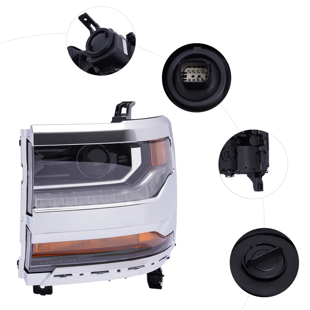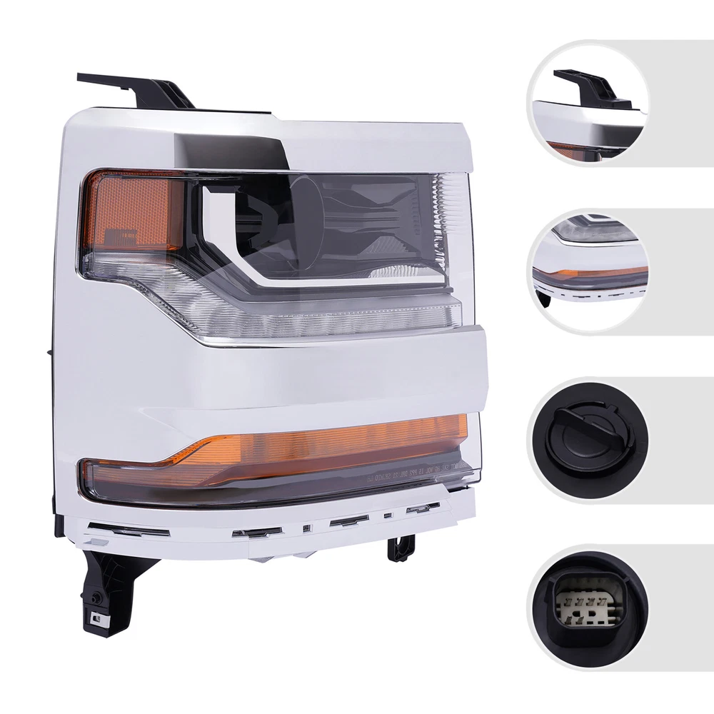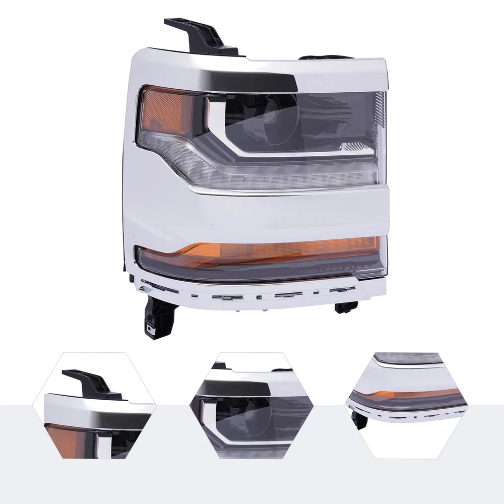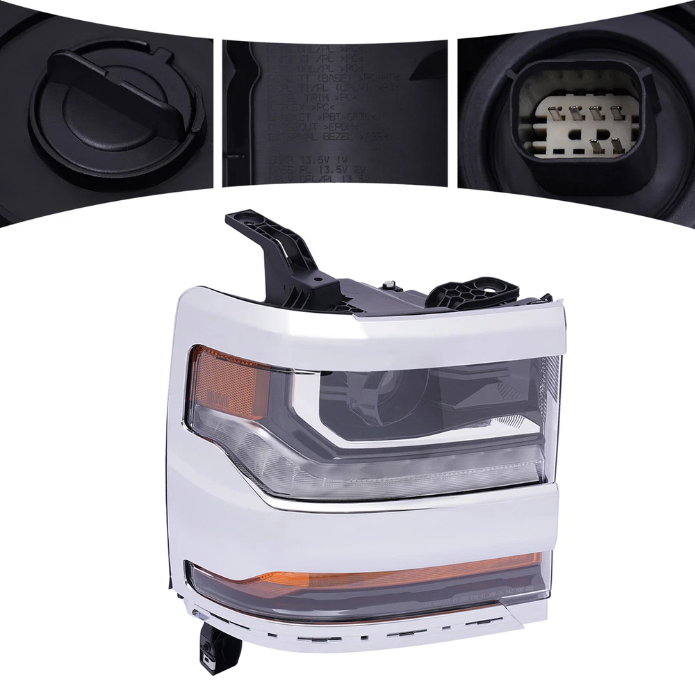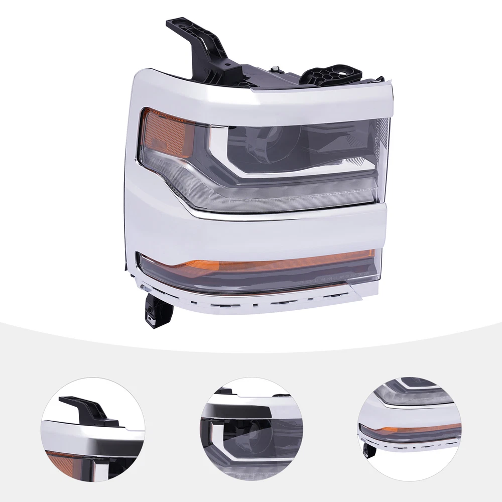 For Chevy Silverado 1500 2016-2019 HID Right Side Headlight Headlamp RH Specifications OE/OEM Part Number : 84388724, RH DOM K2CC MCE HID CHROME 337486 Applicable Models: For SILVERADO 1500 2016-2019 OTN: Parts Link GM2503445/GM2502445 Condition: New Material: Plastic Lens Color: Clear Housing Color: Chrome LED Daytime Running Lights: Yes Light Source Type: Xenon High Beam Type: D5S (Not Included) Low Beam Type: D5S (Not Included) Turn Signal Type: XWY21W(Included) Side Marker Lamp Type: LED (Included) Installation Position: Right Side, Front Way of Use: Direct Replacement Assembly Method: Closed Gross Weight: 3.5kg/ 7.7 lbs Package Size: 40*35*30cm/ 15.7 *13.7* 11.8 inch Key Features Good Compatibility: This product is a customized product, specially customized for 2016-2018 Chevy Silverado 1500 . So it can be compatible with the adapted models. High-quality Material: This product is made of high-quality plastic, with high hardness, high tightness, strong compression resistance and long service life. Good Customer Service: Communication is the best way to solve problems. If you encounter any problem after purchase, please contact us in time before opening or unpacking the box. We will do our best to solve the problem for you. Highlights Brand New, With High Quality Direct Replacement Trouble-free Installation Stylish Appearance Strong and Durable Exquisite Workmanship Easy to Clean Stable Performance Long Service Life Right Side Headlight Notes We strongly recommend professional installation. Please contact us if you have any questions. Please allow the slight color difference caused by the shooting light and 1-3cm error due to manual measurement, and make sure you do not mind before you place the order. Fits (As a Reference) For 2016-2019 Chevy Silverado 1500 Package Included 1x Right Headlamp Payment Delivery details Terms of sales About us Contact us Payment We accept ebay payment 。 Fees such as import duties, taxes are not included in the item price or shipping costs. These charges are the buyer's responsibility. Delivery details Shipping: 2-9 working days to: USA Terms of sales We maintain high standards of excellence and strive for hundred percent customer satisfaction. Feedback is very important to us. We hope that you contact us immediately before you give neutral or negative feedback, so that we can address your concerns. It is impossible to address issues if we do not know about them! About us Your satis faction is our ultimate goal. We work hard to earn your trust and future business. Our certified technicians have tested each item before shipping. The unit comes with 1 year limited warranty on all manufacturing defects. a) If you receive a defective item, you may return it or ask for a discount. Please contact us within 14 days after you receive the package. b) What you returned must be intact and in its original packaging as re? u. Customer is responsible for shipping costs of the returned item. c) We will cover the cost of shipping back t with the shipping rate indicated in the registration page. We will send you a new unit or refund the full payment you paid. Thank you. Contact us Business Hour Business Hour: Monday To Friday: 8:30 AM to 5:00 PM (Beijing China time) Due to time zones, our reply to your questions may not be immediately. But within above working time, we will reply your email within 24 hours. If it's non-workdays, please kindly be patient and wait till Monday. Please contact us with ebay message. Please feel free to contact us if you have any questions. Monday To Friday: 8:30 AM to 5:00 PM (Beijing China time) Due to time zones, our reply to your questions may not be immediately. But within above working time, we will reply your email within 24 hours. If it's non-workdays, please kindly be patient and wait till Monday. Please contact us with ebay message. Please feel free to contact us if you have any questions. Brand Unbranded Lighting Technology HID Type Headlight Assembly Features DOT-Certified, SAE-Certified Housing Color Chrome Placement on Vehicle Front, Right, RH Lens Color Clear Items Included Include All Bulbs Except D5S HID Bulb Manufacturer Part Number GM2503445/GM2502445 OE/OEM Part Number GM2503445/GM2502445 Manufacturer Warranty 3 Years Superseded Part Number 84388724, RH DOM K2CC MCE HID CHROME 337486 Fitment Type Direct Replacement Assembly Type Composite Year 2016 2017 2018 2019 Fits Model For 2016-2019 Chevrolet Silverado 1500 [ HID/Xenon Type ] Part Description Headlamp Assembly, Frt Other Names Composite Assembly, Headlamp Assembly Other Part Number GM2503445/GM2502445 Note HID Type -- Include All Bulbs Except D5S HID Bulb