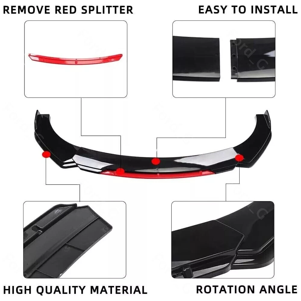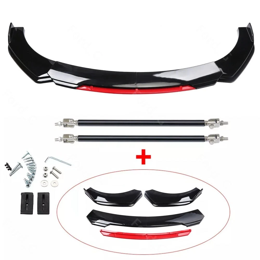 Description: Front bumper lip body kit spoiler: Material: ABS Color: Glossy Black+Red Placing on the vehicle: front Splitter Rods: Color: Glossy Black Material: stainless steel Length: 20cm Location: This delicate and compact joystick is mainly fixed to body components (front and rear walls, skirts, head, and tail lips), and can also be installed on the car center console or interior panel. Features: Made of updated and durable ABS plastic, with added reinforcing ribs, it will not deform after long-term use. Longer and wider than others. Provide an elegant and personalized appearance. Prevent the car from being scratched and improve the decoration level of the car. With screws, installation is more convenient and stable. Contains instructions, highly recommended for professional installation* Packaging included: 1 * Front bumper spoiler cover lip 2 * Splitter Rods