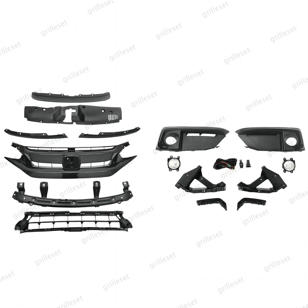 Fit for : 1 Set (15 PCS) Includes:(See more pictures for details) 1 Pc front radiator support cover 2 Pcs front grille gloss black extension moldings assembly 1 Pc front upper gloss black grille 1 Pc front bumper upper support beam bar iron 1 Pc front lower black grille mesh 1 Pc front bumper lower garnish 2 Pcs fog lights with bulb,switch,relay and Harness 2 Pcs fog light bezels(gloss black+matte black) 2 Pcs front headlight brackets 2 Pcs front bumper brackets Item OE number : 71121-TBA-A61;71125-TEY-Y01;71129-TEY-Y01;71124-TEY-Y01;74127-TBA-A00;71115-TBA-A60;71111-TBA-A50;71150-TBA-A00;71198-TBA-A00;71193-TBA-A00;71190-TBA-A00;71140-TBA-A00;71185-TBA-A60;71180-TBA-A60;33950-T5R-A01;33900-T5R-A01 Installation : Perfect fit direct replacement, no modifications required. Installation manual not provided; we recommend professional installation. Item's-Features : Superior quality kit 100% brand new Made from high-quality materials Excellent replacement part, no modifications needed Other parts fit for