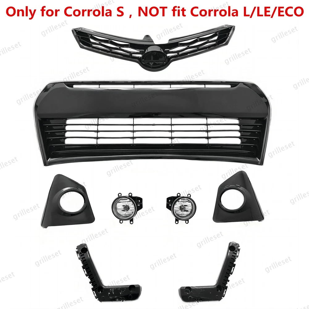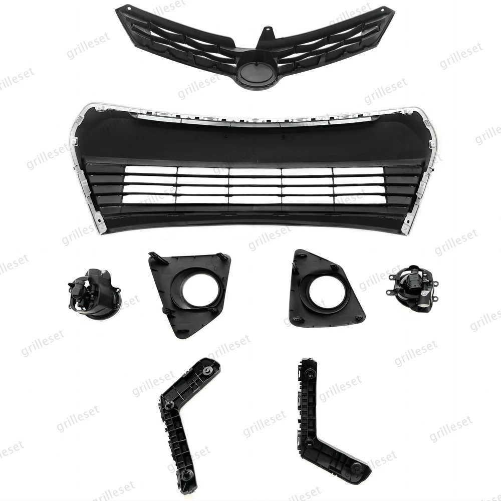Fit for : 1 Set (8 PCS) Includes:(See more pictures for details) 1 Pc front upper black grille 1 Pc front lower gloss black grille mesh with chrome trim 2 Pcs fog lights with bulb 2 Pcs fog light bezels(gloss black) 2 Pcs front bumper brackets Item OE number : 53111-02770 ; 53126-02090; 53102-02210 ; 52116-02240; 52115-02240; 81482-02470 ; 81481-02480 ; 81220-02160 ; 81210-02160 Installation : Perfect fit direct replacement, no modifications required. Installation manual not provided; we recommend professional installation. Item's-Features : Superior quality kit 100% brand new Made from high-quality materials Excellent replacement part, no modifications needed Other parts fit for