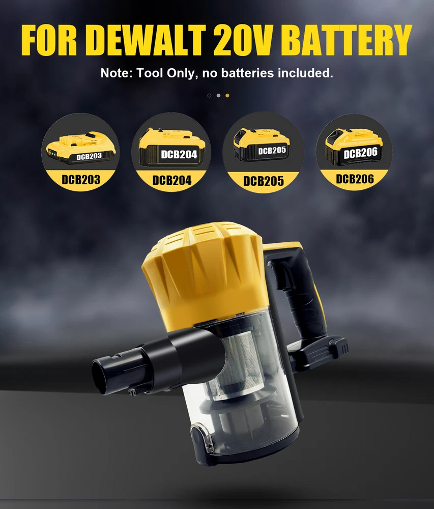 For DeWalt 18V-20V Lithium-Ion 20V MAX Cordless Wet-Dry Vacuum DCV580H /Battery Product Content: option 1:1xCordless Vacuum Cleaner with accessories(NO BATTERY) option 2:1x Cordless Vacuum +1x Charger + 2x Battery Feature: 【Powerful Suction Ergonomic Design】This cordless vacuum is equipped with high-power motor and provide 30KPa super suction,which easily clean pet hair,paper scraps,dust,crumbs,and sand etc.,makes cleaning a breeze!Ergonomic design helps you reduce hand pressure and use it with less effort. 【Battery Powered Vacuum】The cordless stick vacuum compatible with De-Walt 20V battery, suitable for DCB200 DCB201 DCB203 DCB204 DCB205 DCB206 and more.We focus on reliable tools, provide for Dewalt power access solutions, stay away from inferior and dangerous batteries, and if you already own DW batteries and chargers, you will avoid unnecessary expenses. 【3-in-1 Vacuum Cleaner】The portable vacuum features 3 suction nozzles and 2 extensible tube,which can be assembled into two models. Mode 1: Handheld Cordless Vacuum Cleaner,which is suitable for cleaning kitchen,sofa,keyboard and car. Mode 2: Detachable Pusher Vacuum Cleaner,which can be moved freely to clean hard-to-reach spaces.Ideal choice for and car cleaning and home. 【Efficient Long Lasting】With flexible 180° swivel floor brush,which is easy to clean all around the corner of furniture.Featuring a 600ML capacity dust collection cup,transparent can monitor fill levels effortlessly,so you can clean more in one go.The washable filter helps to maintain the decent suction and efficiency of this powerful vacuum. 【HEPA 3.0 Filter Container】Portable vacuum cleaner has a dual filtration system. The removable washable HEPA can effectively capture particulate matter, including pet dander, ensuring cleaner and healthier air in your home. It is paired with a 600ml removable garbage container to keep your daily cleaning made easy. In one package, we already have one filter installed in the machine, and at the same time configure two filter additional ones. 【LED Light Design】Handheld car vacuum has bright LED system,no more worries about being cleaning in a dark corner or at night.If you encounter any problems about the portable vacuum,please feel free to contact us,we will offer a free replacement. Product specifications: 30KPa Strong suction power Suitable for hardwood floors and low-pile carpets 99.99% highly efficient filter system adjustable tube Washable filter Voltage: 18-21V Capacity: 0,6 litre Engine PS: 0.5 PS Noise level: 70 decibel Brushless motor 150000r/min Payment Delivery details Terms of sales About us Contact us Payment 1.We accept PayPal only! 2.Please keep the consistency of the address from Paypal and eBay. 3.Payment must be received within 3 days since you won the item, or eBay will launch Unpaid Reminder Against you Delivery details Sincerely thank you for choosing us, we suggest you reading our shipping terms and conditions. 1.All items are shipped within 1-2 business days from our USA warehouse after we confirm your payment and your shipping address .Pls Kindly noted that it will be change the depend on the Domestic handling time.(except Saturday, Sunday and other USA holidays) 2.We only ship our items to the areas that our logistics provider covers. Due to stock status and time differences, we will choose to ship your item from our first available warehouse for fast delivery. 3.To ensure you receive item safely, please offer the concrete and complete shipping address,Please keep the consistency of the address from Paypal and eBay. 4.Sometimes your order may be impacted by extreme bad weather, strikes or other unexpected events. 5.If there are any problems with your order, including late delivery or being lost, please do not hesitate to contact us. We are happy to offer solutions to your inquiries.Our goal is customer satisfaction! Terms of sales 1. If you are satisfied, we sincerely hope that you can leave us a positive feedback and 5-star Detailed Seller Ratings, which are of vital importance to the growth of our company. 2. Besides, PLEASE DO NOT leave us 1, 2, 3 or 4-star Detailed Seller Ratings because they are EQUAL TO negative feedback. Like we said before, if you have any questions, please contact us first coz disagreement cannot settle problems. We really appreciate your support! 3. We Strive for Five Star 5/5 detailed rating positive feedback. If for any reason you are not satisfied please give us the opportunity to resolve the issue before leaving feedback or opening a dispute on Paypal or Ebay. Thank you! About us Our goal is to make sure you are a happy buyer and pleasant shopping with us. Please email us before leaving any 1 or 2 ratings, negative feedback or open any ebay or paypal dispute. We understand the concerns and frustrations you might have, and will do our endeavor to resolve the issues. Please give us the opportunity to resolve any problem. Dear buyers, we appreciate your business, if you are satisfied with our service, please leave us a positive feedback and rate the details of the transaction (Detailed Seller Ratings) with a "PERFECT 5 STARS". Your recognition will make us more confident to develop business and serve you better. Contact us If you have any question,Please no hesitation to contact us via ebay message, we will reply you within 12 working hours.