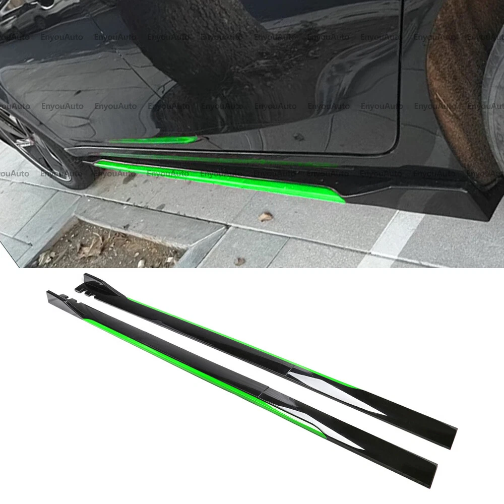 Color: Black + Green Performance Part: Yes Features: Can be cut according to the length of the side skirt of the car gtin13: Does not apply Attachment Method: Screws Placement on Vehicle: Left, Right Material: High Quality ABS Surface Finish: Painted Manufacturer Part Number: Does Not Apply Fitment Type: Direct Replacement Number of Pieces: 2 Mounting Hardware Included: Yes Interchange Part Number: Does Not Apply Brand: Unbranded Type: 86 inches UNIVERSAL Side Skirt Extension Rocker Panel Splitter UPC: Does not apply
