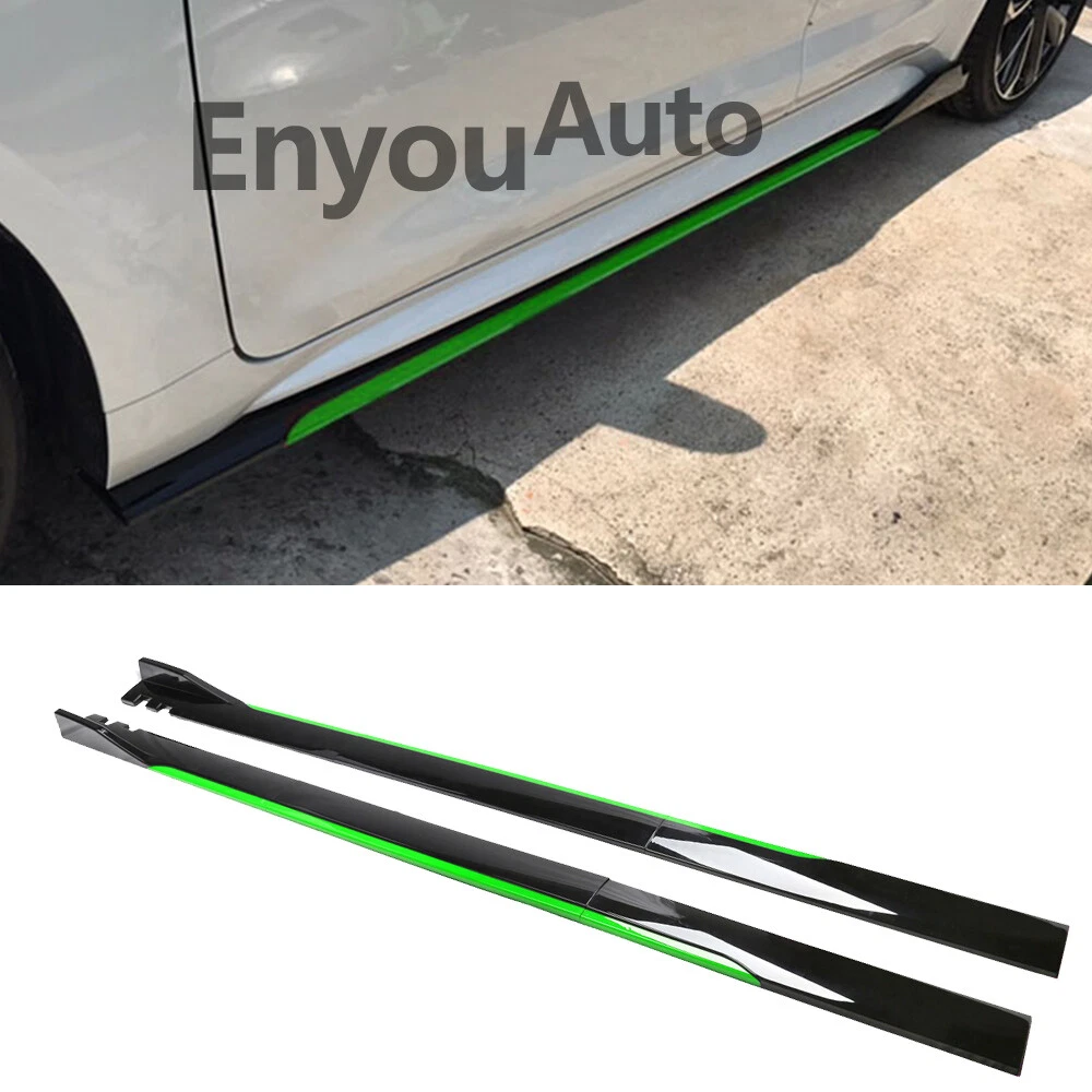 Placement on Vehicle: Left, Right Manufacturer Part Number: Does Not Apply Color: Black + Green Interchange Part Number: Does Not Apply gtin13: Does not apply Fitment Type: Direct Replacement Performance Part: Yes UPC: Does not apply Mounting Hardware Included: Yes Features: Can be cut according to the length of the side skirt of the car Attachment Method: Screws Material: High Quality ABS Surface Finish: Painted Number of Pieces: 2 Type: 86 inches UNIVERSAL Side Skirt Extension Rocker Panel Splitter Brand: Unbranded
