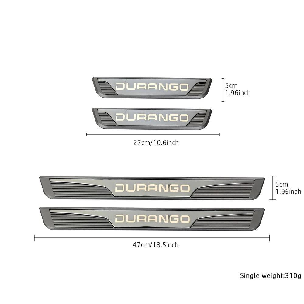 Store Categories Store Categories Other For Dodge Durango Accessories Car Door Sill Cover Panel Step Protector Trim 4PCS Product Description Note! This is universal fitment; please check the size before ordering! Product Specifications Auto Door Sill Plate Protectors Black Mirror surfacestainless steel Front/Rear Door Sill Scuff Plate Guard, Welcome Pedal Protector CoverVehicle Fitment Condition: Brand New Material: Stainless Steel & ABS Plastic Compatible Models: Fit for 2003-2024 Dodge Durango Models Features: Scratch-resistant, corrosion-resistant, Stylish Look, easy installation Color: Black Type: Door Sill Protector / Threshold Cover / Door Sill Cover / Panel Step Protector Package Includes: 4-piece set (front and rear door sill covers) Installation: Adhesive backing, no drilling required Product Size: Long Size 18 1/2"(L) x 2"(W) x 1/4"(H); Short Size 10 3/5"(L) x 2"(W) x 1/4"(H) What’s in the Box 2 front door sill covers 2 rear door sill covers Pre-applied adhesive strips for quick installation How to Install Clean the door sill area to remove dust and debris. Peel the adhesive backing from the door sill cover. Align the cover to your Dodge Durango door sill and press firmly. Enjoy added protection and style in minutes! Features High-Quality Material - This item is made of high-quality silicone polymer material, heat /cold resistance, abrasion resistance, anti-aging, and waterproof. Color Black Manufacturer Part Number 000-BXG-DQ-DLF-01-BK Material Stainless steel+ABS Vintage Part No Placement on Vehicle Left, Right, Front, Rear, Lower Brand LB-US Type Door Interchange Part Number 000-BXG-DQ-DLF-01-BK OE/OEM Part Number 000-BXG-DQ-DLF-01-BK Manufacturer Warranty 1 Year Attachment Type Self-Adhesive Fitment Fit For Dodge Durango 2003-2024 Models Features Easy Installation, Heat Resistant, Self-Adhesive, Waterproof Vintage Car Part Yes Universal Fitment Yes Finish Painted Performance Part Yes Payment Policy Shipping Policy Returns Policy Contact Us Payment Policy Product shipment will be processed only after payment is cleared. Shipping and handling will be confirmed according to the ship-to address. Shipping Policy Your shipping address must be correct. Service shipping time is provided by the carrier, excluding weekends and holidays. Shipping time may vary, especially during the holiday season. If you have not received the goods in thirty days after payment, please contact us. We will look for tracking shipment and inform you of the latest situation. If there is any issue, you can contact us in time. We will solve the problem for you as soon as possible; our goal is to make every customer satisfied! Returns Policy If you are not satisfied, you can apply for a return, but you need to bear the shipping cost. Contact Us If you have any problems or concerns whatever with your order or products, please message us and give us a chance to assist you before you leave any feedback, Please contact us directly via email or message, we would get back to you within 1 b usiness day Copyright © 2023 Dianxiaomi