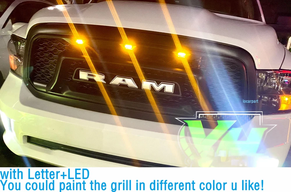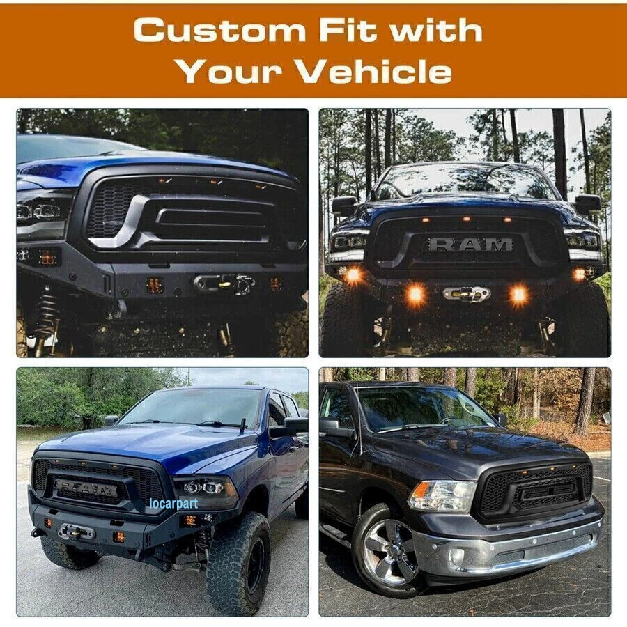 Product Description Specification: Color: Matte black Material: ABS Plastic Type:Front Grille Grill with 3Needed letter. No drilling and cutting required. Feature: 1. High quality replacement ABS material, superior craftsmanship and durability. Each grille ensures good looks with a clean surface, you can enhance the style or function of the grille. 2. Prevent foreign material from entering the air intake and damaging the engine. 3. Provides better airflow to the radiator to help the cooling process better. 4. EASY INSTALLATION: Just unscrew your old grill and screw this one in with existing bolts. Tips: install ation video can be found b y searching “RAM1500 grill 2013install” on YouTube. Package Include: 1x Front Grille 1x Wire Harn ess 3x Amber LED WITH 3Needed Letter(R*A*M) About Us Payment Terms Returns Contact Us Figocarpart is one of US’s fastest growing online retailersWith our best effort, we are now trusted by more than 100,000 customers nationwide. We are dedicated to offering you an unrivalled choice of products with unbeatable low price and best quality. We ONLY accept Paypal. We ship to your eBay or Paypal address. Please make sure your eBay ID、contact and Paypal address is correct before you pay. Thank you! 1.If item is defective and not working on arrival, please contact us within 7 days of receiving the defective for repair or refund. Item may be returned within 30 days of purchase upon your receipt.All items returned must contain all original packaging materials. 2.This item have 1Year warranty. We offer free repairing service within 6 months from the date of purchased. If damaged is caused by undue wear and tear, dirt, misused, improper installation/operation, accident or repaired by unauthorized person, the warranty becomes void. 3.All returns must have prior authorization. Please message us firstly if you have any problem. Please contact us before you return the item. 4.Buyer is responsible for the return postage. If you ask for a refund during valid period, we will offer you a refund without postage charges. Shipping and handling charges, insurance are not refundable in any case. We are only responsible for once re-sending expense for replacement due to defects. Please contact us firstly if you have any problem. * We give you a 30 days money-back guarantee to return any items purchased, no questions asked, hassle-free. * You can return for refund or exchange same product or different product (difference of price will be charged) within 30 days after you receive the item. * Any returning or exchanging items must be in the original package and new condition. We reserve rights to refuse refit or damaged items (caused by buyer) for return and exchange. * No returns will be accepted if you contacted us after 30 days of receiving the item. * Return fee: Buyers are responsible to pay the return shipping fee. 15% restocking fee on total price will be charged and be deducted from the refund total. * Exchange fee: No restocking fee will be charged, however Buyers are responsible to pay the return shipping fee and exchange reshipping fee, depending on the weight of merchandise. * Email our Customer Service Department first before return the item back. Please specify your item number, your eBay ID, and the reason for the return. Click here to contact us directly. Any questions, pls contact us via ebay message or email us.We will reply your message within 48 hours. If you do not receive our reply within 48 hours, pls post a message again because sometimes our message system may block some emails. About Us Figocarpart is one of US’s fastest growing online retailersWith our best effort, we are now trusted by more than 100,000 customers nationwide. We are dedicated to offering you an unrivalled choice of products with unbeatable low price and best quality. Payment We ONLY accept Paypal. We ship to your eBay or Paypal address. Please make sure your eBay ID、contact and Paypal address is correct before you pay. Thank you! Terms 1.If item is defective and not working on arrival, please contact us within 7 days of receiving the defective for repair or refund. Item may be returned within 30 days of purchase upon your receipt.All items returned must contain all original packaging materials. 2.This item have 1Year warranty. We offer free repairing service within 6 months from the date of purchased. If damaged is caused by undue wear and tear, dirt, misused, improper installation/operation, accident or repaired by unauthorized person, the warranty becomes void. 3.All returns must have prior authorization. Please message us firstly if you have any problem. Please contact us before you return the item. 4.Buyer is responsible for the return postage. If you ask for a refund during valid period, we will offer you a refund without postage charges. Shipping and handling charges, insurance are not refundable in any case. We are only responsible for once re-sending expense for replacement due to defects. Returns Please contact us firstly if you have any problem. * We give you a 30 days money-back guarantee to return any items purchased, no questions asked, hassle-free. * You can return for refund or exchange same product or different product (difference of price will be charged) within 30 days after you receive the item. * Any returning or exchanging items must be in the original package and new condition. We reserve rights to refuse refit or damaged items (caused by buyer) for return and exchange. * No returns will be accepted if you contacted us after 30 days of receiving the item. * Return fee: Buyers are responsible to pay the return shipping fee. 15% restocking fee on total price will be charged and be deducted from the refund total. * Exchange fee: No restocking fee will be charged, however Buyers are responsible to pay the return shipping fee and exchange reshipping fee, depending on the weight of merchandise. * Email our Customer Service Department first before return the item bac