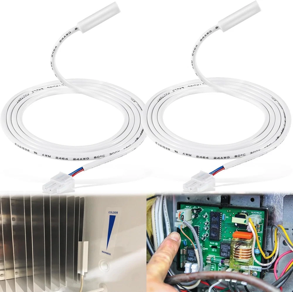 Replaces Part Numbers: Refrigerator thermostat for Dometic 3851210025 thermistor sensors. Replaces 2931863035, 2931863076, 3851059042. Applicable Model: Compatible with almost all Dometic RM,S,NDR & DM Series Models with two wire thermistor:RM1350 RM2351 RM2354 RM2410 RM2451 RM2454 RM2551 RM2554 RM2607 RM2611 RM2612 RM2620 RM2652 RM2663 RM2807 RM2811 RM2812 RM2820 RM2852 RM2862 RM3807 RM3862 RM3863 RM3962 etc.For S520 S530 S619 S620 S630 S819 S820 S830 S1521 S1621 S1631 S1821 S1831 etc. For NDR1062 NDR1292 NDR1492 etc. For DMC702 DMR702 DM2652 DM2672 Dm2682 DM2683 DM2852 DM2882 etc. Excellent Performance: Solve your refrigerator problems, the dometic 3851210025 refrigerator thermistor kit can sense temperature changes in the refrigerator and send a message to the control board Signals, which can easily solve your refrigerator temperature problems. You no longer have to worry about your fridge freezing all your food and not providing the right temperature. High Quality: This Thermistor is made from high-quality materials, with environmental protection epoxy resin coating and double-layer sealing, with better insulation sealing. Can be more accurately transmits a temperature change signal from -20°C to 105°C. Satisfaction Guarantee: We aims to provide the best service for our customer, if you're not 100% satisfied with our item, simply return it for a full refund in 60 days, no questions asked money back guarantee with 12 months’ warranty. Package Include: 2 x Thermistors