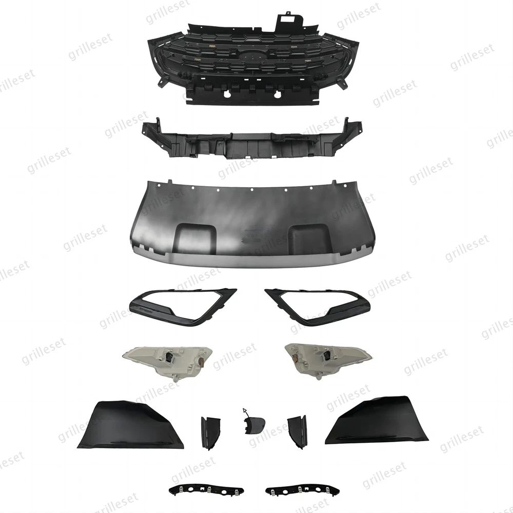 Fit for : 1 Set (14 PCS) Includes:(See more pictures for details) 1 Pc front upper black grille with chrome trim 1 Pc front bumper bracket center support 1 Pc front bumper lower center cover (silver) 2 Pcs f ront Fog lights with 2 bulb 2 Pcs fog light bezels 2 Pcs front bumper lower cover 2 Pcs front bumper lower inner cover 2 Pcs front bumper brackets 1 Pc tow hook hole cover Item OE number : GN1Z-17B968-AB;GN1Z-8419-BA;GN1Z17C897C;GN1Z-17D957-NB;GN1Z-15266-BD;GN1Z-15266-BC;GN1Z-13200-AE;GN1Z-13200-AC;GN1Z-17D957-CB;GN1Z-17D957-DB;GN1Z-17A900-AD;GN1Z-8419-AC;GN1Z-8419-BC;GN1Z-17A870-A;GN1Z-17A869-B Installation : Perfect fit direct replacement, no modifications required. Installation manual not provided; we recommend professional installation. Item's-Features : Superior quality kit 100% brand new Made from high-quality materials Excellent replacement part, no modifications needed Other parts fit for