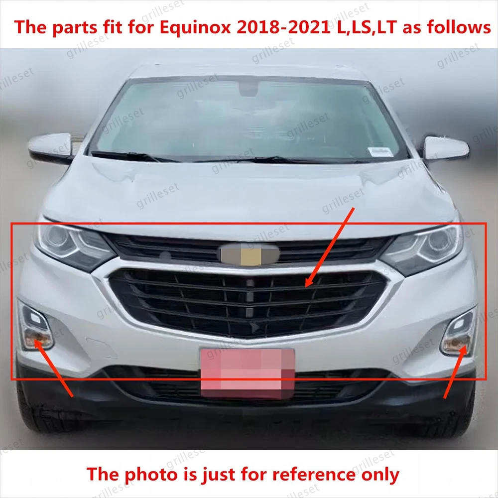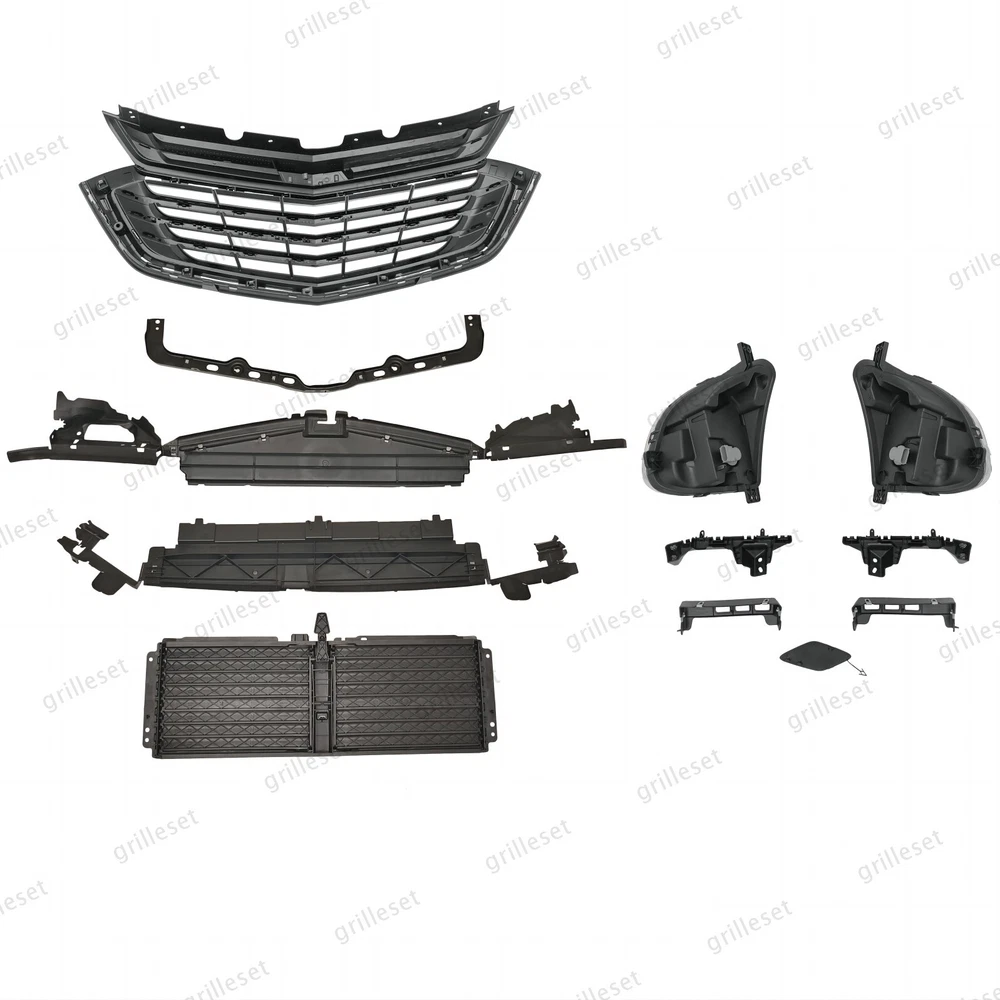 Fit for : Chevrolet Equinox 2018-2021 L, LS,LT 1 Set (12 PCS) Includes:(See more pictures for details) 1 Pc front upper black grille with chrome trim 1 Pc front b umper fascia center support assembly 1 Pc front radiator upper air baffle assembly 1 Pc front radiator lower air baffle assembly 1 Pc front radiator upper shutter assembly 2 Pcs f ront turn signal lamp assembly with 1 bulb 2 Pcs front bumper brackets 2 Pcs front wheelhouse liner brackets 1 Pc tow hook hole cover Item OE number : 84150736;84129794;84618992;84273390;84460245;84226245;84226246;84293393;84293394;23227561;23227562;84431746 Installation : Perfect fit direct replacement, no modifications required. Installation manual not provided; we recommend professional installation. Item's-Features : Superior quality kit 100% brand new Made from high-quality materials Excellent replacement part, no modifications needed Other parts fit for