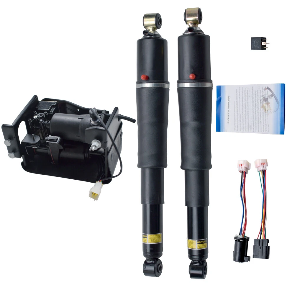 For Escalade Suburban Tahoe Yukon Rear Pair Air Suspension Shocks & Compressor Vehicle Information: This is a brand new (NOT Remanufactured) rear air suspension. It eliminates the costly and problematic autoride system. Built to meet or exceed exact OEM specifications. Guaranteed highest quality available! Application: For Cadillac Escalade 2002-2013 For Cadillac Escalade ESV 2003-2013 For Cadillac Escalade EXT 2003-2013 For Chevy Suburban 1500 2000-2013 For Chevy Tahoe 2000-2013 For Chevy Tahoe Hybrid 2008-2013 For GMC Yukon 2000-2013 For GMC Yukon Hybrid 2008-2013 For GMC Yukon XL 1500 2000-2013 For GMC Yukon XL Denali 2001-2013 Suspension Reference OE/OEM Number: 19300045, 19300046, 22187156, 15869656, 15945872, 19300069, 19300071, 19300072, 25885469, 25979391, 25979393, 25979394, 15756926, 19300040, 22187152, 88965458, 88965338, 22400885, 22187158, 25885470, 15924688, 15869658, 25885467, 15918525, 15852159 Compressor Reference OE/OEM Number: 949-000, 949000, 949-001, 949001, 15254590, 19299545,22941806 Feature: - Condition: 100% Brand New - Fitment Type: Direct Replacement - Material: Steel, Aluminum Alloy, Nylon - Operating Pressure : ≤1.5 Mpa - Temperature Range:≤+80° , ≥-30° - Without air pipe and filter (you can use the ones that come with the original car) Package Included: 2x Rear Suspension Shocks 1x Compressor Pump