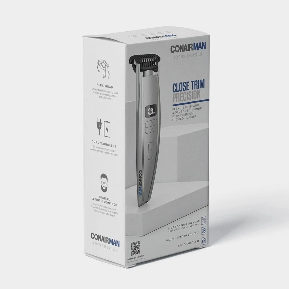 Product Description ConairMAN Beard Trimmer for Men, for Face and Mustache, Wet/Dry Beard and Stubble Trimmer, Flex Contouring Head with 15 Precise Settings and Premium Unqiue Flex Contouring Head: with 15 precise settings, the ConairMAN Beard and Stubble Trimmer tracks the curves of your face for exceptional accuracy and comfort for the perfect beard and stubble trim. Also safely and precisely trims body hair. Advanced Blade Technology: Skin-friendly, premium etched blades for extreme sharpness and durability. The ConairMAN Beard and Stubble Trimmer also has as a flip-back guide comb for edging and detailing. Beard Trimmer with Digital Length Control: the ConairMAN Beard and Stubble Trimmer offers 0.4 mm to 5.0 mm with precise automatic adjustments for ultimate length control. The LCD Screen displays selected length and charge time remaining. Use Cord or Cordless: The long-lasting dual battery system offers advanced power performance for a reliable beard and stubble trim. A 90-minute charge provides 60 minutes of cordless use or 5-minute quick charge for a single stubble trim. Respect The Ritual: Don't crack under the pressure to look good. ConairMAN has beard trimmers, home haircut kits, electric shavers & more for precision cuts & trims so you can get your look right. About Us We are a reputable seller with many years of experience selling on eBay. Our goal is to provide high-quality products and excellent customer service. Shipping Items will be shipped within 1-3 business days when we received payment. (Orders are not processed on weekends & holidays) Tracking information will be sent once item is shipped. Delivery time depends on destination and other factors Item is shipped to ebay address. Leaving correct address can minimize delay. For international shipping and shipping to Guam, Hawaii and Alaska, Please contact us before placing the order. International buyers please note: Import duties, taxes and charges are not included in the item price or shipping charges. These charges are buyer’s responsibility. We will try our best to reduce the risk of the custom duties. Local pick-up is unavailable at the moment. Contact Us We reply any email messages within 1 business / working days(off-duty at weekend). If you do not get a response from us, then please check your junk or spam mailbox. Our Business hours: Mon-Fri 9:00-18:00, UTC/GMT +8 hours. Please contact us either by clicking "contact seller" in the "purchase history" section or simply click "ask a question" at the bottom of this page. If you are unsatisfied with our item or service, please contact us before leaving any feedback. We are committed to resolve all issues in a friendly and satisfactory manner.
