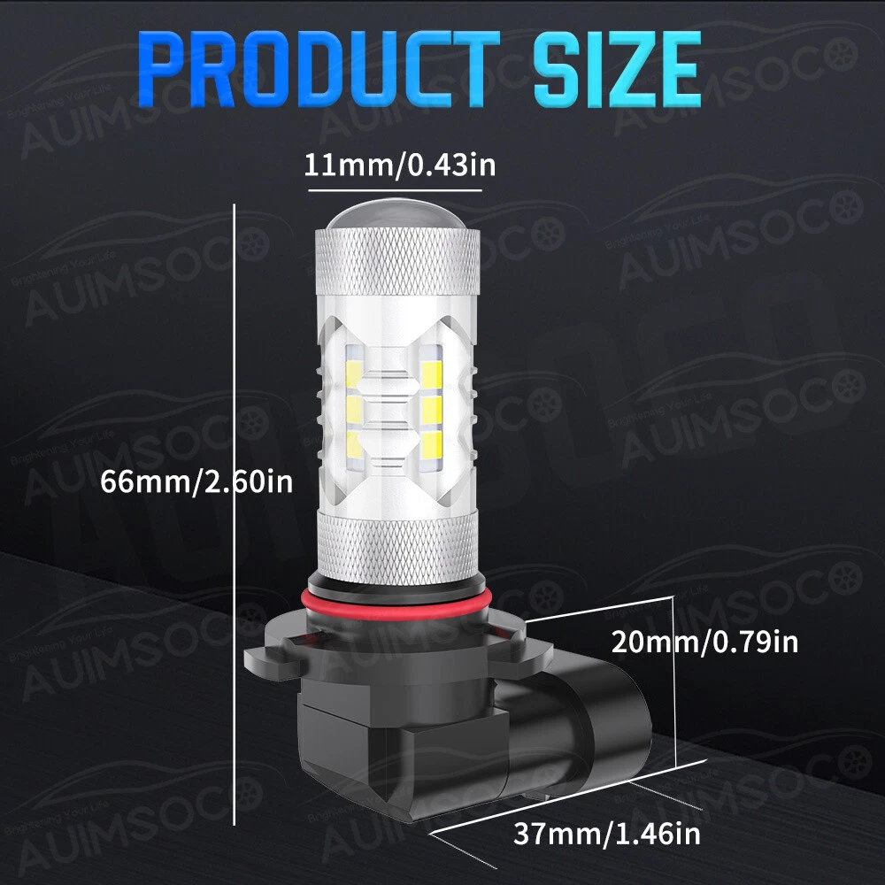 AUIMSOCO Authorized Store on eBay 3570 Series Cold White LED Headlight Bulb Conversion Kit 1 x Pair 9005 Headlight Replace Halogen High Beam 1 x Pair 9006 Headlight Replace Halogen Low Beam LED Headlight Bulb: Bulb Size: 9005 9006 Plug Type: High Beam / Low Beam Power: 40W/per pair Luminous Flux: 4000LM/per pair Operating Voltage: DC 9-32V(fit 12V,24V vehicles) Color Temperature: White 6000K IP68 rated water and dust seal,360 degree beam angle Material: Aviation 6063 aluminum profile Operating Temperature: -40-80 degree Celsius Fanless: yes, no noise Over 50000hrs lifetime Warranty: 1 years warranty Usage: headlight og Light Specification: Bulb Size: H10/9145 Usage: LED Fog Light Voltage: DC 12V-24V Power: 30W/per pair Lumen: 3000LM/per pair Color Temperature: 6000K LED Chips: AUIMSOCO customized LED chips Material: Heatsink aluminum shell Fanless: yes, no noise Lifespan: 50,000 hours Waterproof Rate: IP67 Warranty: 1 years warranty Color Temperature: 6000K Clear White Lifespan: 50,000 working hours, stable quality, long service life Aluminum heat sink design,built-in automotive circuit to prevent electronic interference. The model is the same as factory light, no need to change car wire rute,just Plug and Play, NO modification required Energy saving, environmental protection, Stable performance, through strict test, Use safer driving in the car Warm Tips: This model comes in multiple models, If you are not sure about the bulb size, please send us your vehicles' make/model/year via ebay message to confirm with us before purchasing. Any questions please feel free to contact us, we will help you solve it. Package include: 6x LED Headlight Bulbs 9005 (High Beam) + 9006 (Low Beam) + H10/9145 (Fog Light) Randomly send new and old packaging boxes