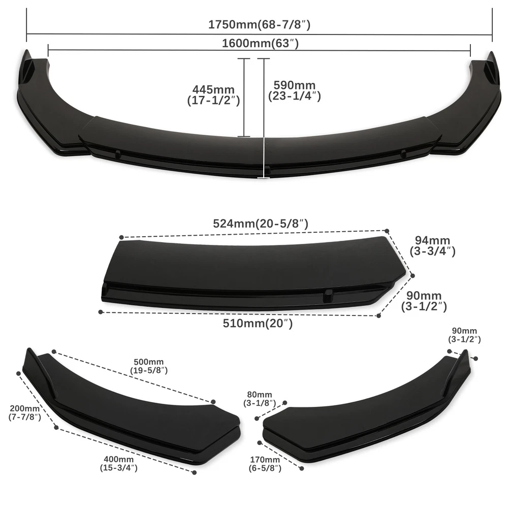 Front Bumper Lip Specification: -Type:Front Lip Chin Bumper Body Kits -Material:ABS -Color:Black -Weight:1768g -Placement on Vehicle:Front;;Lower -Fitment Type:Performance/Custom Feature: -Direct Fit. -Easy install and durable use. -Great quality and great Fitment. -Correct Connector No cutting or splicing. -Strict quality control standards to Build and test. -It'll give you a sporty look without making it too aggressive. -Light in weight and enduring, different optical line comes from different points of view. *Instruction Not Included, Professional Installation Is Highly Recommended.* Strut Rods ★ Material : Stainless Steel ★ Quatity : 2 x Stainless Steel Bumper Lip Splitter Tie Rod Bars. ( Stainless steel has weldability, corrosion resistance and heat resistance.) ★ Position : This exquisite and compact lever is mainly fixed on the body components (front and rear surround, skirt, head and tail lip), and can also be installed in the car center console or interior trim panel ★ Require : Product will require drilling holes into the bumper and/or lip/diffuser to attach safely to the vehicle. Package Included: 1set Front Lip Chin Bumper Body Kits 2 X Strut Splitter Rods Delivery details/Shipping and handing: We will ship your order within 3 working days If you didn't receive the item after 7 days, Please contact us, we'll investigate and solve the delivery problem. If you are satisfied with our service, please leave 5 Stars Rating Thanks! About us: If you have any questions, please feel free to email our service specialists 24 Hours a Day, 7 Days a Week, and we will reply you ASAP. If no response within 24 Hours, please check the spam of mail box or kindly re-send it to us. We greatly appreciate your POSITIVE feedback. Please do NOT leave negative feedback without any contact.
