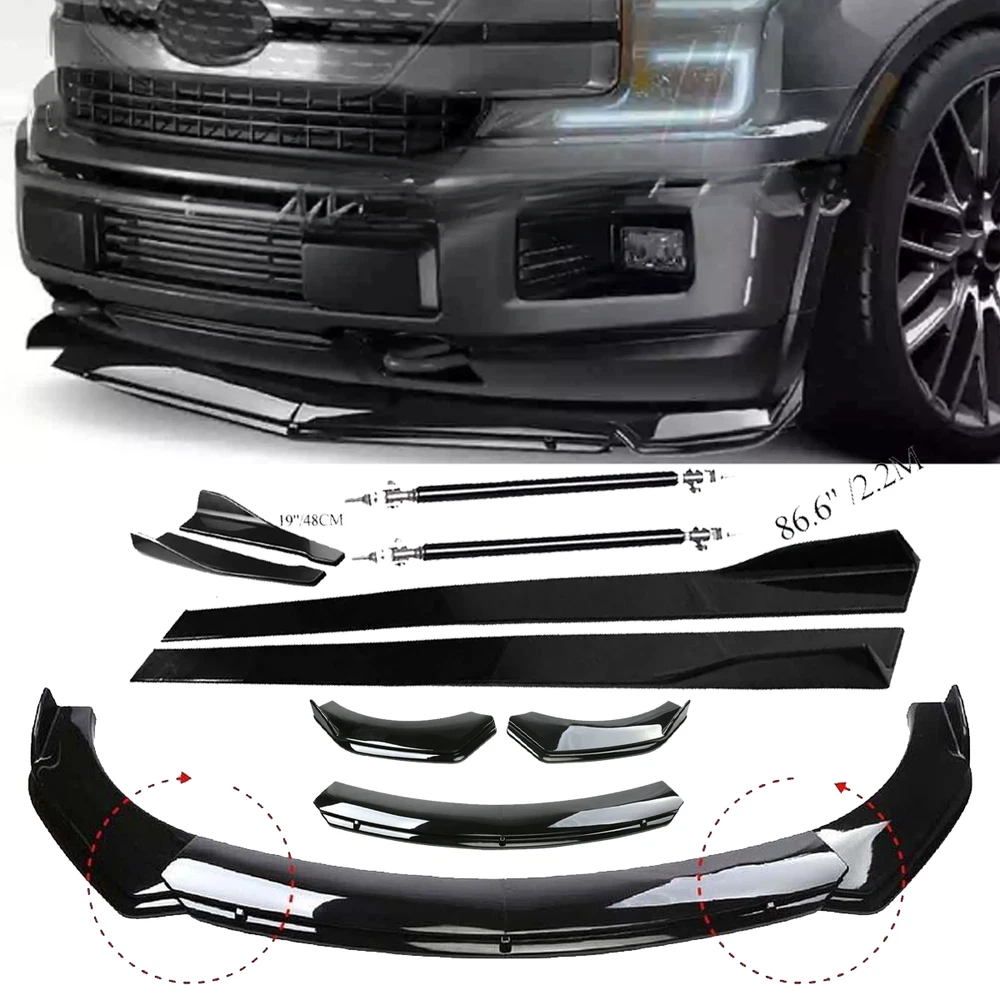 Front Bumper Lip Spoiler Splitter Body Kit+Side Skirt For Audi A4 A5 A6 A7 B7 B8 Items Description Feature: Made of Updated durable and sturdy ABS plastic, adding stiffeners, no deformation in long-term use. Longer and wider than others. Provide an elegant and personalized appearance. Prevent the car from being scraped and improve the level of the decoration of the car. Adjustable angle, suitable for most models of Cars. Come with 2 blocks, More convenient installation, and stable adjustment. This is a set(4 pieces) front bumper cover lip front spoiler Instruction Included, Professional Installation Is Highly Recommended Specification: Type: Front Bumper Lip Body Kit Spoiler Material: High quality ABS Polyurethane Color: Glossy Black Weight: about 3.5 lbs Placement on Vehicle: Front; Lower Tough&Hard-wearing: Made from good-quality ABS Material with excellent abrasion-resistance and toughness, durable in use and NOT easy to deform. Dynamic Shape Design: With dynamic shape design, the front bumper lip can reduce wind resistance while driving. Protection: The sturdy materials of this front bumper lip can reduce damage and prevent the car from scratches. Advantages: 1. Prevent the car from being scraped and improve the level of the decoration of the car. 2. Reduce the wind resistance and disturbing effect. 3. Give 3D visual effect, Provide an elegant and personalized appearance Side Skirt: Type: Side Skirt Extensions Splitters Diffuser, Side Skirt Extensions Material: ABS Color: Glossy Black Length Size: 2.2m(86.6'') Placement on Vehicle: Left & Right Feature: Improve the appearance of the car, enhance the protection, and make the car stylish and cool Using matching bolts for easy installation(Screws and instruction are included). It requires drilling holes to attach the side skirts stably to the vehicle. (Application of double-sided tape may provide more stability and is very highly recommended. However, the double-sided tape is not included. ) Product may be trimmed to accommodate vehicle's side skirt length. ( Please measure your vehicles length before purchasing. ) Rear Lip Wrap Angle Splitters: Condition: 100% Brand New Type: Rear Lip Wrap Angle Splitters Material: High Quality ABS Color: Glossy Black Size: As the picture show Weight:300g Placement on Vehicle: Rear Bumper Strut Rods: Color:Black Material: premium quality aluminum alloy Length: adjustable from 8" to 13" (200mm-330mm) Position: This exquisite and compact lever is mainly fixed on the body components (front and rear surround, skirt, head and tail lip), and can also be installed in the car center console or interior trim panel Note: Require drilling holes into the bumper lip diffuser to attach safely to the vehicle. Package Included: 1 x Front Lip Chin Bumper Body Kits Pair of 2.2m Side Skirt Extensions (L&R) 10 x Screws Pair of Rear Lip Pair of Strut Rods .