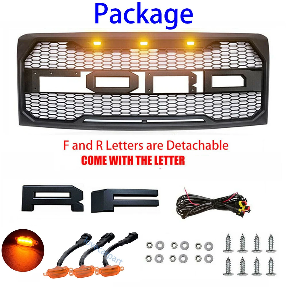 Product Description Specification: Color: Matte Black Material: Durbale ABS Plastic Part F&R Letters are detachable.You coud paint the grille in color you need. Feature: 1.Products: This grill fit for f150 2009, 2010, 2011, 2012, 2013, 2014 Ford F150. 2.Fitment:Fits for 2009-2014 Ford F150 raptor grill comes with three LED lights and FORD logo letters. 3.Features: The grill is made of ABS plastic that is lightweight and durable, giving your vehicle full protection on-road and off-road. Provides better airflow to the radiator to help the cooling process better. 4.Color: Luxury matte black front grill add more aggressive and rugged style to your front end. 5.Easy to Install: This grill replacement is very easy to install, you just unscrew the old one, and replace it with the new grill. The pre-drilled hole is matched with 2009-2014 Ford F150. All needed wiring harness of LED Accents are provided, so simply splices into existing factory headlight harness. Installation can be completed with only essential hand tools. Package Include: 1x Front Grille 1x F&RLetters 3x Amber LED Lights 1x Wire Harness About Us Payment Terms Returns Contact Us Figocarpart is one of US’s fastest growing online retailersWith our best effort, we are now trusted by more than 100,000 customers nationwide. We are dedicated to offering you an unrivalled choice of products with unbeatable low price and best quality. We ONLY accept Paypal. We ship to your eBay or Paypal address. Please make sure your eBay ID、contact and Paypal address is correct before you pay. Thank you! 1.If item is defective and not working on arrival, please contact us within 7 days of receiving the defective for repair or refund. Item may be returned within 30 days of purchase upon your receipt.All items returned must contain all original packaging materials. 2.This item have 1Year warranty. We offer free repairing service within 6 months from the date of purchased. If damaged is caused by undue wear and tear, dirt, misused, improper installation/operation, accident or repaired by unauthorized person, the warranty becomes void. 3.All returns must have prior authorization. Please message us firstly if you have any problem. Please contact us before you return the item. 4.Buyer is responsible for the return postage. If you ask for a refund during valid period, we will offer you a refund without postage charges. Shipping and handling charges, insurance are not refundable in any case. We are only responsible for once re-sending expense for replacement due to defects. Please contact us firstly if you have any problem. * We give you a 30 days money-back guarantee to return any items purchased, no questions asked, hassle-free. * You can return for refund or exchange same product or different product (difference of price will be charged) within 30 days after you receive the item. * Any returning or exchanging items must be in the original package and new condition. We reserve rights to refuse refit or damaged items (caused by buyer) for return and exchange. * No returns will be accepted if you contacted us after 30 days of receiving the item. * Return fee: Buyers are responsible to pay the return shipping fee. 15% restocking fee on total price will be charged and be deducted from the refund total. * Exchange fee: No restocking fee will be charged, however Buyers are responsible to pay the return shipping fee and exchange reshipping fee, depending on the weight of merchandise. * Email our Customer Service Department first before return the item back. Please specify your item number, your eBay ID, and the reason for the return. Click here to contact us directly. Any questions, pls contact us via ebay message or email us.We will reply your message within 48 hours. If you do not receive our reply within 48 hours, pls post a message again because sometimes our message system may block some emails. About Us Figocarpart is one of US’s fastest growing online retailersWith our best effort, we are now trusted by more than 100,000 customers nationwide. We are dedicated to offering you an unrivalled choice of products with unbeatable low price and best quality. Payment We ONLY accept Paypal. We ship to your eBay or Paypal address. Please make sure your eBay ID、contact and Paypal address is correct before you pay. Thank you! Terms 1.If item is defective and not working on arrival, please contact us within 7 days of receiving the defective for repair or refund. Item may be returned within 30 days of purchase upon your receipt.All items returned must contain all original packaging materials. 2.This item have 1Year warranty. We offer free repairing service within 6 months from the date of purchased. If damaged is caused by undue wear and tear, dirt, misused, improper installation/operation, accident or repaired by unauthorized person, the warranty becomes void. 3.All returns must have prior authorization. Please message us firstly if you have any problem. Please contact us before you return the item. 4.Buyer is responsible for the return postage. If you ask for a refund during valid period, we will offer you a refund without postage charges. Shipping and handling charges, insurance are not refundable in any case. We are only responsible for once re-sending expense for replacement due to defects. Returns Please contact us firstly if you have any problem. * We give you a 30 days money-back guarantee to return any items purchased, no questions asked, hassle-free. * You can return for refund or exchange same product or different product (difference of price will be charged) within 30 days after you receive the item. * Any returning or exchanging items must be in the original package and new condition. We reserve rights to refuse refit or damaged items (caused by buyer) for return and exchange. * No returns will be accepted if you contacted us after 30 days of receiving the item. * Return fee: Buyers are responsible to pay the return shipping fee. 15% restocking fee on t