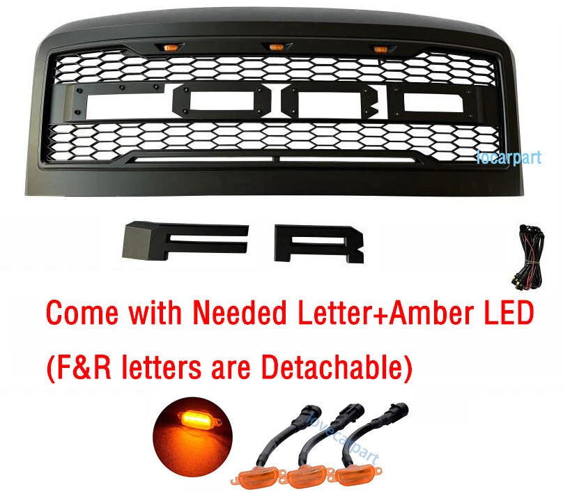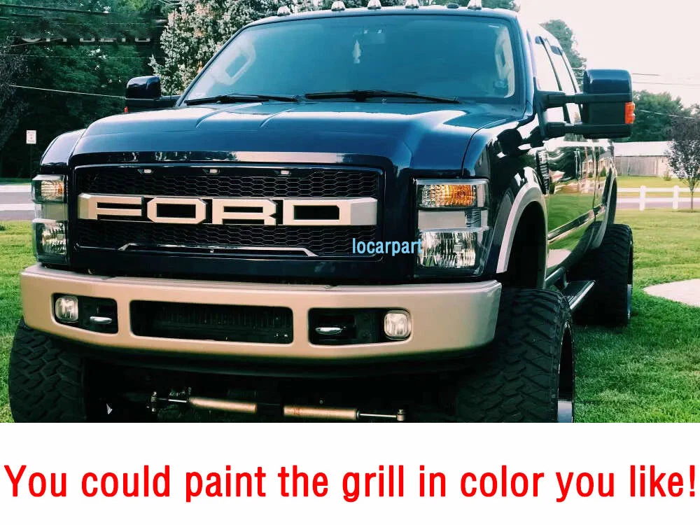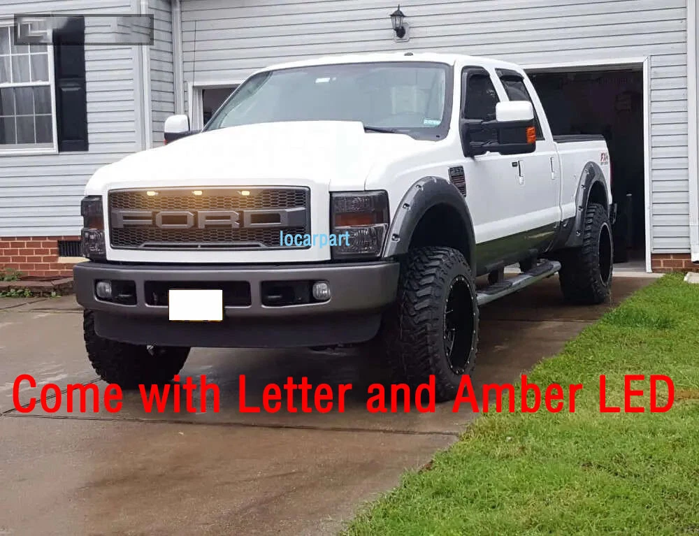 Product Description Specification: Color: Matte black Material: ABS Plastic Type:Front Grille Grill with 4 letter. Need to buy letter from other seller No drilling and cutting required. Feature: 1. High quality replacement ABS material, superior craftsmanship and durability. Each grille ensures good looks with a clean surface, you can enhance the style or function of the grille. 2. Prevent foreign material from entering the air intake and damaging the engine. 3. Provides better airflow to the radiator to help the cooling process better. 4.EASY INSTALLATION: Just unscrew your old grill and screw this one in with existing bolts. The pre-drilled holes match up your F250 and the installation is no sweat. Tips: installation video can be found by searching “F250 grill 2008 install” on YouTube. Package Include: 1x Front Grille 3x Amber LED Lights 1x Wire Harness About Us Payment Terms Returns Contact Us Figocarpart is one of US’s fastest growing online retailersWith our best effort, we are now trusted by more than 100,000 customers nationwide. We are dedicated to offering you an unrivalled choice of products with unbeatable low price and best quality. We ONLY accept Paypal. We ship to your eBay or Paypal address. Please make sure your eBay ID、contact and Paypal address is correct before you pay. Thank you! 1.If item is defective and not working on arrival, please contact us within 7 days of receiving the defective for repair or refund. Item may be returned within 30 days of purchase upon your receipt.All items returned must contain all original packaging materials. 2.This item have 1Year warranty. We offer free repairing service within 6 months from the date of purchased. If damaged is caused by undue wear and tear, dirt, misused, improper installation/operation, accident or repaired by unauthorized person, the warranty becomes void. 3.All returns must have prior authorization. Please message us firstly if you have any problem. Please contact us before you return the item. 4.Buyer is responsible for the return postage. If you ask for a refund during valid period, we will offer you a refund without postage charges. Shipping and handling charges, insurance are not refundable in any case. We are only responsible for once re-sending expense for replacement due to defects. Please contact us firstly if you have any problem. * We give you a 30 days money-back guarantee to return any items purchased, no questions asked, hassle-free. * You can return for refund or exchange same product or different product (difference of price will be charged) within 30 days after you receive the item. * Any returning or exchanging items must be in the original package and new condition. We reserve rights to refuse refit or damaged items (caused by buyer) for return and exchange. * No returns will be accepted if you contacted us after 30 days of receiving the item. * Return fee: Buyers are responsible to pay the return shipping fee. 15% restocking fee on total price will be charged and be deducted from the refund total. * Exchange fee: No restocking fee will be charged, however Buyers are responsible to pay the return shipping fee and exchange reshipping fee, depending on the weight of merchandise. * Email our Customer Service Department first before return the item back. Please specify your item number, your eBay ID, and the reason for the return. Click here to contact us directly. Any questions, pls contact us via ebay message or email us.We will reply your message within 48 hours. If you do not receive our reply within 48 hours, pls post a message again because sometimes our message system may block some emails. About Us Figocarpart is one of US’s fastest growing online retailersWith our best effort, we are now trusted by more than 100,000 customers nationwide. We are dedicated to offering you an unrivalled choice of products with unbeatable low price and best quality. Payment We ONLY accept Paypal. We ship to your eBay or Paypal address. Please make sure your eBay ID、contact and Paypal address is correct before you pay. Thank you! Terms 1.If item is defective and not working on arrival, please contact us within 7 days of receiving the defective for repair or refund. Item may be returned within 30 days of purchase upon your receipt.All items returned must contain all original packaging materials. 2.This item have 1Year warranty. We offer free repairing service within 6 months from the date of purchased. If damaged is caused by undue wear and tear, dirt, misused, improper installation/operation, accident or repaired by unauthorized person, the warranty becomes void. 3.All returns must have prior authorization. Please message us firstly if you have any problem. Please contact us before you return the item. 4.Buyer is responsible for the return postage. If you ask for a refund during valid period, we will offer you a refund without postage charges. Shipping and handling charges, insurance are not refundable in any case. We are only responsible for once re-sending expense for replacement due to defects. Returns Please contact us firstly if you have any problem. * We give you a 30 days money-back guarantee to return any items purchased, no questions asked, hassle-free. * You can return for refund or exchange same product or different product (difference of price will be charged) within 30 days after you receive the item. * Any returning or exchanging items must be in the original package and new condition. We reserve rights to refuse refit or damaged items (caused by buyer) for return and exchange. * No returns will be accepted if you contacted us after 30 days of receiving the item. * Return fee: Buyers are responsible to pay the return shipping fee. 15% restocking fee on total price will be charged and be deducted from the refund total. * Exchange fee: No restocking fee will be charged, however Buyers are responsible to pay the return shipping fee and exchange reshipping fee, depending on the weight of merch