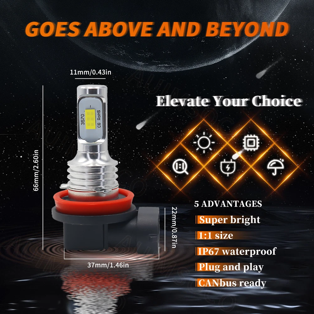 This listing includes 3 pairs of 6000K White LED Bulbs combo fit For Headlight + Fog Light This complete headlight package includes High Beam Headlight + Low Beam Headlight + Fog Light . Ultra Bright LED Bulbs, 2 - 3 times brighter than traditional bulbs Easy plug and play, safe connection Done long testing to make sure it fits your car!! When compared to OEM yellowish halogen lights, these LED bulbs are in a brightness HID matching xenon white color to give your car an awesome look! LED Headlight Bulb: Plug Type: High-Low Beam Voltage: DC 9V-36V(fit 12V,24V vehicles) Color Temperature: Pure White 6000K - 6500K IP67 rated water and dust seal,over 30000hrs lifetime Beam Angle: 270 degree@low beam,360 degree@high beam Material: Magnalium, Aluminum Operating Temperature: -40-80 degree Celsius Usage: Headlight (2pcs/set) High-Low Beam LED Headlight Conversion Kit Customized COB chip light source, 2 luminous faces(270/360 degree) no blind zone Engineering beam pattern design throw more light on road evenly at appropriate angle without foggy light Xenon white light reflect road paint/signs better to show clearer road situation during night driving 270 degree low beam angle with cut-off line,will not dazzle oncoming traffic All-in-one heat conduction+high speed mute fan system keep the light bulb in appropriate working temperature Built-in constant current CPU, instant full brightness without start-up relay Two-way heat dissipation channel All-in-one Magnalium Aluminum alloy profile as heat conduction system, 360 degree heat radiating Fog Light Bulb: Plug Type: Fog Light Voltage: DC 9V-36V(fit 12V,24V vehicles) Color Temperature: Pure White 6000K - 6500K Lifespan: >30, 000 hrs Light Color: White This new product has high luminous efficiency, low power consumption and long service life. 360 degrees illumination with magnified projector lens Heat resistant, prevent overheat problem Easy installation, Direct plug in and play. Best used for Fog/ Driving lights Faster on/ off response time Energy saving, environmental protection, Stable performance, through strict test, Use safer driving Package Included: 2 x LED high beam bulbs 2 x LED low beam bulbs 2 x LED fog bulbs On Nov 11, 2024 at 17:47:00 PST, seller added the following information: