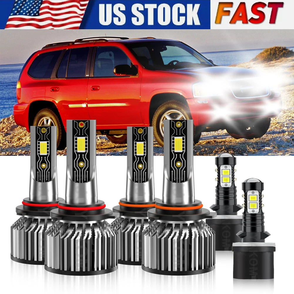 For GMC Envoy 2002-2009 6x LED 6500K Headlight High/Low Beam+Fog Light white