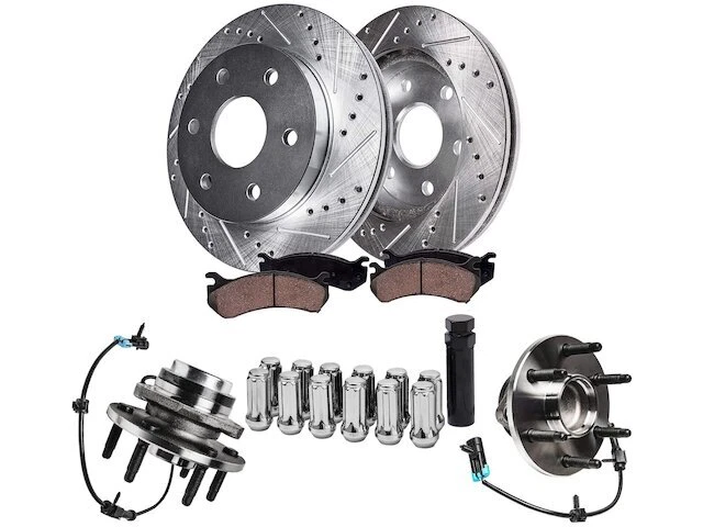 Parts Geek - For GMC Yukon Brake Pad and Rotor and Wheel Hub Kit Detroit Axle 14332CFTG For GMC Yukon Brake Pad and Rotor and Wheel Hub Kit Detroit Axle 14332CFTG Review Fitment Notes to Ensure Proper Fit Position: Front Condition: New Brand: Detroit Axle Notes: Brake Kit -- RWD; with 12.00 inch (305mm) Front Rotor; 6-Lug Brake Pad Type: Ceramic Hub ABS Type: Sensor Wire Hub Lugs: 6 Hub Position: Front Lug Nut Diameter: 0.91 inch Lug Nut Exterior Finish: Chrome Lug Nut Material: Steel Lug Nut Overall Height: 2 inch Lug Nut Package Contents: 12pc Wheel Lug Nuts + 1pc Key Lug Nut Seat Style: Conical Seat - 60 degree Lug Nut Thread size: 14mm x 1.5 Rotor Type: Drilled and Slotted Features: Kit Includes: (2) Front Drilled and Slotted Brake Rotor + (2) Front Ceramic Brake Pad + (2) Front Wheel Hub and Bearing + (12) Chrome Wheel Lug Nut + (1) Socket Key Brake Kits are built to exceed OEM Specification and have the proper fit and finish required for superior stopping power Built under strict quality control standards; Tested for impact, wear and fatigue to ensure quality and durability; Manufactured in ISO9002 Certified facility 12 Month Warranty Fitment Notes: Vehicle Sub Model 2006 GMC Yukon SL RWD 2000-2006 GMC Yukon SLE RWD 2000-2006 GMC Yukon SLT RWD Payment Information See our other listings Ensure Proper Fit To confirm that this part fits your vehicle, enter your vehicle's Year, Make, Model, Trim and Engine in the Compatibility Table. Also review the notes section in the compatibility chart for additional specifications about this part. About This Seller We have been offering automotive parts & supplies for sale since Parts Geek, LLC was formed in 2008. We pride ourselves in providing the best customer service on the Internet. Return Policy Return shipping paid by: Buyer Item must be returned within: 30 Days Refund will be given as: MoneyBack PLEASE DO NOT SEND RETURNS BACK WITHOUT A VALID RMA NUMBER. (We do not accept returns on opened or plugged in Electrical parts - No Exceptions) Core Policy Return shipping paid by: Buyer Item must be returned within: 30 Days Refund will be given as: PLEASE DO NOT SEND RETURNS BACK WITHOUT A VALID RMA NUMBER. (We do not accept returns on opened or plugged in Electrical parts - No Exceptions) California Proposition 65 WARNING: This product may contain chemicals known to the State of California to cause cancer and birth defects or other reproductive harm. For more information go to www.p65warnings.ca.gov