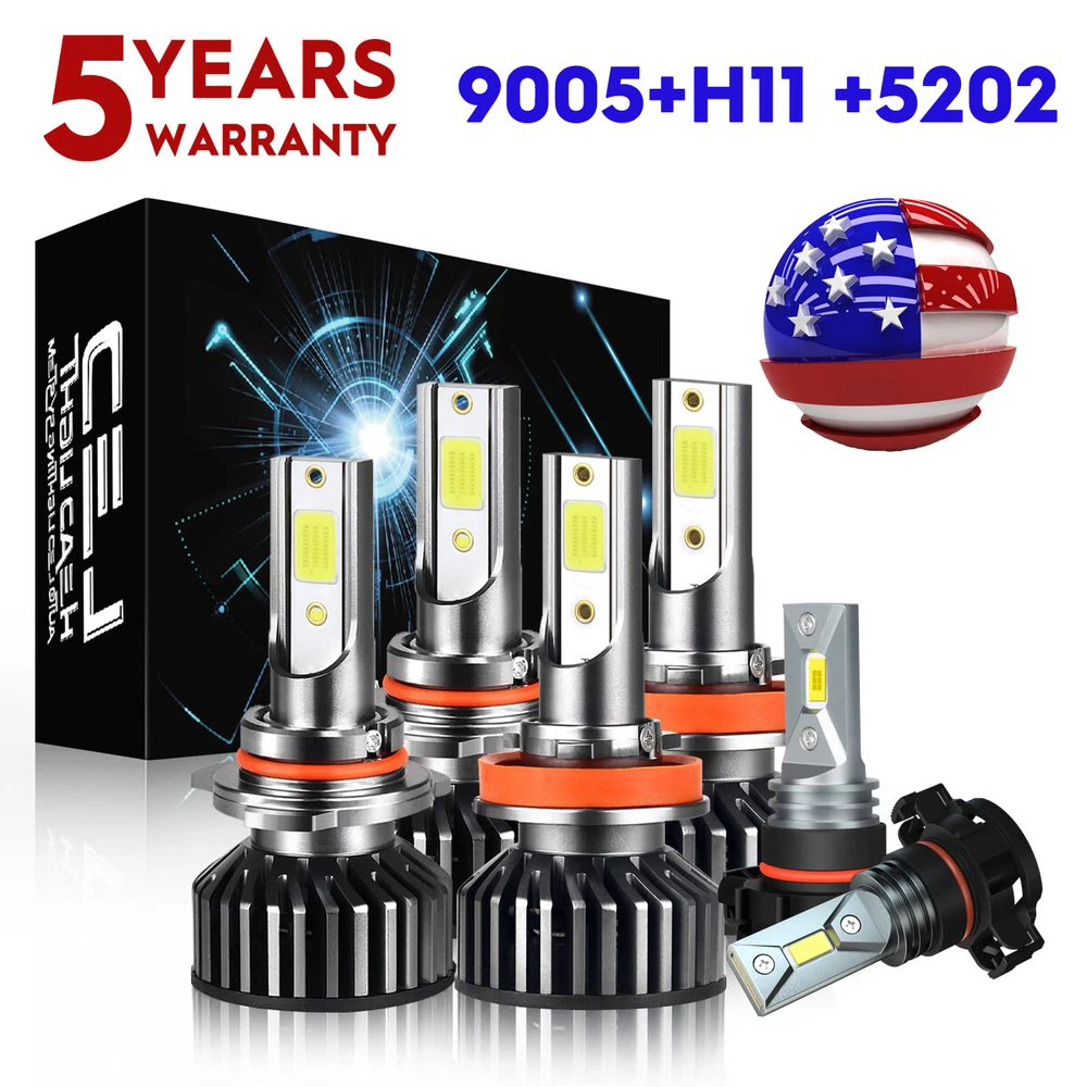 Item Description 。 Note: 1. This kit is for vehicles with Factory Halogen Systems, it will not work with vehicles with Factory HID.Pls confirm the item if it can matches your car before you purchase. 2. If there is an error on the onboard computer after installed LED light bulb on a car, please install a resistor or capacitor to eliminate the error message. This product does not come with an external resistor or capacitor. Headlight Description: 9005+H11 As long as the halogen bulb size is the same with this, it will fit directly. If you don't find your vehicle in this listing, please contact us, we'll recommend correct bulb size to you. Super Bright LED Light Bulb Replace Halogen Lamp 6000K 360 Degree Adjustable Beam Angle Headlight Feature: 9005+H11(H9=H8=H11) Application:LED Headlight High / Low Bulbs Voltage: DC9-16V Wattage :100W Color temperature: 6000K Light source: COB Chips Input: 3.2A + 0.2A / 3.2A - 0.2A Certifications: CE Lumens: 10000 lumens per bulb Fog Light: Plug Type: 5202 / H16 LED Quantity(each bulb): 2pcs* 3570 CSP chips Luminous Flux: 11000LM/set (5500LM/bulb) Operating Voltage: DC 12V(fit 12V vehicles) Color Temperature: 6000K White IP68 rated water and dust seal, over 50000hrs lifetime Beam Angle: 360 degree Material: Aviation 6063 aluminum profile Operating Temperature: -40-80 degree Celsius Usage: headlight,fog light Application Tips: -LED replacement bulbs are engineered for superior performance, exceptional looks, and increased safety. -No delay to light up, Faster on/off response time -Lifespan: 50,000 working hours, stable quality, long service life -Aluminum heat sink design,built-in automotive circuit to prevent electronic interference. -The model is the same as factory light, no need to change car wire rute,just Plug and Play, NO modification required -Energy saving, environmental protection, Stable performance, through strict test, Use safer driving in the car - This model don't come with CANBUS Error Free function.The load equalizer (canbus)can be used to eliminate the hyper flash (higher frequency turn signal) caused by LED replacement bulbs in some vehicles.Corrects hyper flashing and bulb-out warning caused by LED replacement bulbs. Package include: 2PC LED Headlight High Beam Bulb 2PC LED Headlight Low Beam Bulb 2Pcs LED Fog Bulbs 。 Shipping Policy Payment Method Returns Policy Shipping Policy 1) Item Located in US , We will ship all orders asap from our USA warehouse, All shipment will ship by UPS or USPS.Not include small package which less than $5. 2) Item Located in China ,We will ship from China Warehouse.( No service on Weekend and public holidays). 3) We will ship out all orders as soon as possible after payment verified, please allow up to 1-4 business days for delivery. 4) Delivery time within the U.S. is usually just 3 to 6 business days, however in rare cases it could take 6 to 7 business days. Why Choose the US Stock? 1. Us Local Shipping, No Extra Customs Cost to the US. 2. Fast Delivery: 3-6 Working days Delivery. 3. Best After-Sales Service!!! Payment Method We accept PayPal only. Payment must be made within 4 days of auction closing. (Non-payment may result in a UPI being put on your account. eBay will automatically close your account if you accumulate 4 UPI's total.) TOTAL AMOUNT DUE includes the final auction price plus S&H(Shipping and Handling). S&H will be determined based upon the SHIP TO address. PLEASE NOTE: S&H DOES NOT INCLUDE DUTIES, LOCAL TAXES OR ANY OTHER IMPORTATION FEES. Returns Policy 1. Customer satisfaction is our top goal. We believe our items are so outstanding. All products are quality checked. They are new and in good condition when shipped to our customers. We are convinced you will be happy with your Purchase. 2. If product is defective or damage upon arrival, or wrong product shipped, please contact us immediately. Returns accepted within 14 days of delivery date and item must be in original new condition, not worn or altered in any way with attached tags & wrap. Otherwise deal is final. Return shipping must be paid by buyer. 3. Please contact us first if you have any problems/questions/concerns. We will be happy to resolve any issues you may have in a cordial and friendly manner. 4. We appreciate your Postive Feedback, and will do the same in return. DO NOT leave negative feedback without first communication with us. Please allow max 2 business days for us to response. . Superior LED Source High performance LEDs, vibration resistant and superior illumination stability Faster on/off response time, no incandescent delay Broaden driving vision and brightness Ultra slim design provides super focused light beam, effectively simulate the beam pattern of original halogen lamp and solve the problem of focusing unevenly, super focused and max light output provide a wider and further lighting area. No glare to oncoming traffic, and no dark spots ensure a safer drive. Enhanced Beam Pattern Equipped with improved beam pattern for optimal light shape, LED headlights focuses down the road, which contributes to seeing further and clearer at night with no dark spots, no shadow areas, no glare and no blinding to oncoming drivers Superior Durability Aviation aluminum construction, top LED chips ensure a longer lifespan up to 50,000 hours, excellent waterproof and dustproof performance make it your top pick for travelling even in extreme situations. Item Description 。 Note: 1. This kit is for vehicles with Factory Halogen Systems, it will not work with vehicles with Factory HID.Pls confirm the item if it can matches your car before you purchase. 2. If there is an error on the onboard computer after installed LED light bulb on a car, please install a resistor or capacitor to eliminate the error message. This product does not come with an external resistor or capacitor. Headlight Description: 9005+H11 As long as the halogen bulb size is the same with this, it will fit directly. If you don't find your vehicle in this listin