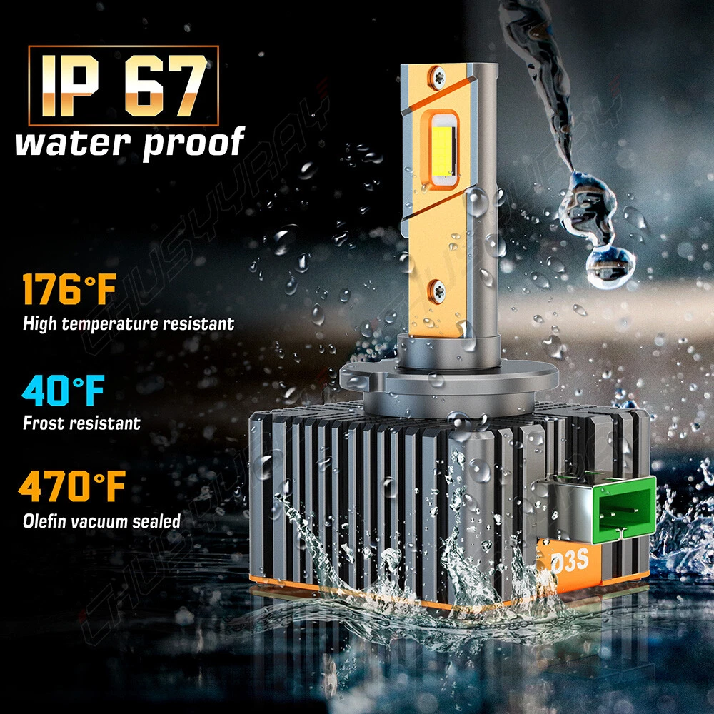 Information: a)Compatible List can not show up all Car model. Please check the Correct item size of your vechicle. it will work and fit.Thank you! b)If you are unsure the item fit or not , please do remember send message to tell us your car make, model, year and other information which is helpful to check the item fit or not. For example: 2004 Ford F 150, high/low beam 2015 RAM 1500 with projector-type, high beam 2019 Ford F 150 ,XL Crew Cab Pickup 4-Door 2.7L Specification: Low power consumption and long lifespan Waterproof and dustproof HID Simple to install With enhanced durability and shock resistance You can see more clearly when driving at night Enhance driving safety Light Color: White Power: 70W/set Type: D3S / D3R / D3C Hight luminous efficacy Flux:12000LM/Pair Waterproof: IP68. Voltage:9V to 36V.Wide-range voltage,constant urrent control,anti-interference circuit design. Apprication:Upgrade for Car,Truck,SUV,RV HID Xenon Headlight,ALL IN ONE Style, no extra driver needed . Beam Angle: 360° Long range:6000K color temperature and 200m light range. Package Includes: 2Pcs HID Xenon Light Bulbs Xenon light is a real highlight for all drivers looking for high performance and stylish design packed with special features and innovative technology. In addition to many other benefits, xenon technology achieves excellent road illumination as well as individual light design. Features:Features: ***Three Times Brightness: LED is about 32000 lumens, the halogen lamp about 1000 lumens, LED consumes approximately 35 watts, about half the halogen lamps of 65 watts. ***Five Times the Product Lifetime: LED without use tungsten wire as a medium, not only a more stable light output, but service life more 50000 hours, five times than the halogen bulb. ***Environmental Protection: Sun white light can make the driver more confortable, anti-UV quartz glass can prevent cracking the mirror and shade, spray,Mercury-free. ***Precise Focal Length: The light same as the original car can avoid glare, Lamp holder with high temperature materials can avoid vaporization and atomization caused by lighting. ***Safety: Oil-resistant, Heat-resistant and wear-resistant due to the good quality wires and materials, Waterproof can reduce the chance of rain leakage and short circuit occurs. 1.HIGH BRIGHTNESS: Lastest CSP TX3570 led chips with 6000K cool white light ;300% brighter than your stock Halogen headlights. technology to ensure a perfect beam pattern without any dark spots or foggy light. 2.POWERFUL HEAT DISSIPATION: Aluminum heat sink and 12,000 RPM Turbo Cooling fan with high efficiency colling to ensures your LED Headlight bulbs Over 50,000 hrs of brilliant continuous light. Control driver has intelligent control chip,can monitor fan speed for optimal heat protection and performance and provide wide voltage,constant current IC. 3.EASY INSTALLATION: Can be installed in 10 mins. No relay. No capacitors. No extra wiring. Plug and play. 4.IP68 WATERPROOF: Water-proof and heat-protected with integrated cooling chip and fan for heat dissipation. Rainproof driver, housing, and fan works even in extreme situations. Automatic short-circuit protection. On Feb 20, 2023 at 01:43:46 PST, seller added the following information: On Nov 22, 2024 at 19:07:14 PST, seller added the following information: