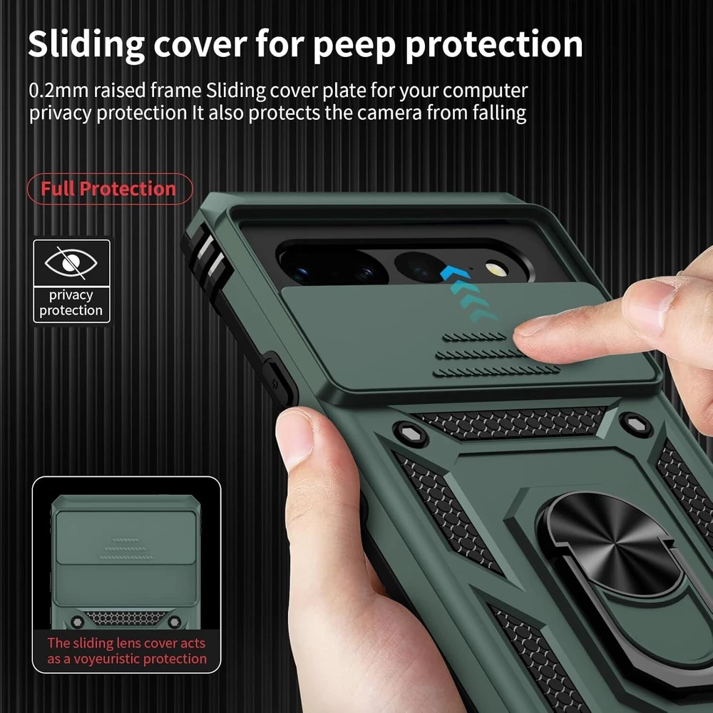 For Google Pixel 7 Pro 5G Case With Military Grade Cover & Ring Holder Kickstand 【Durable and Delicate Phone Case】 Armor Case with sliding camera cover specially designed for Google Pixel 7 Pro. The precise cutout design of this phone case ensures perfect alignment with buttons, camera, speakers, and ports of your phone, allowing for easy access and comfortable pressing! Please note: The metal ring on the back of this case renders it incompatible with wireless charging. 【Military Grade Protection】This double-layer TPU+PC case is shockproof and protect your phone against drops and bumps via maximum shock absorption. It is certified by Military Standard. It has been tested to survive over 8,000 drops from heights of up to 10FT! The flexible TPU interior absorbs impacts, while the reinforced corners on the exterior enhance protection during falls. 【360°Rotation Magnetic Ring Kickstand】This newly upgraded multi-functional case includes a built-in ring kickstand and metal patch. The 360° rotating ring provides two stand modes for vertical or horizontal viewing, making it useful as a ring holder to free up your hands while watching videos. Additionally, the metal patch on the back easily attaches to a magnetic car mount, providing convenience for navigation during driving. 【Crafted for Camera Security 】 This Pixel 7 pro phone case has upgraded camera cover protection. When not in use, the camera cover can be moved to the left to hide the camera, ensuring the utmost protection for your precious camera lens against scratches and bumps. It is very convenient to use and does not affect the quality of photos. Service provides you service. If you have any problems with our products, please contact us via Seller Center at soon. We will reply timely. What's in the box: 1x Case 1x Kickstand (Phone not included) USA SELLER!! BRAND NEW!! BEST QUALITY!! FAST DELIVERY VIA USPS!! GREAT FOR ANY OCCASIONAL GIFT TO YOUR FRIENDS, FAMILY, NEAR AND DEARS ONES!! Contact us Please give us the opportunity to resolve any problem before leaving any negative feedback or open any dispute. Please feel free to contact us on eBay's Internal Message System for any questions or concerns you may have. If you want to change shipping address or want a faster shipping etc., it's Better leave a note of under your order, so the system can hold on your order before we see your message, thanks. We will answer all your questions or concerns ASAP. Feedback We will make every effort to make your shopping the most pleasant and wonderful! Please contact us before leaving a negative feedback, giving us a chance to resolve your problem. Customer Service If you have any problems, we are very glad to help you. Please message us directly through eBay for faster response. Your inquiry is important to us and we'll respond within 24 Hr. SHIPS FROM U.S!!!!!!!!RECEIVE IT FAST AND FREE!!!!!!! Your order will be shipped within 1 business days upon full payment received. [ Due to the different monitor and light effect, the actual color of the item might be slightly different from the color showed on the pictures. Thank you! ]