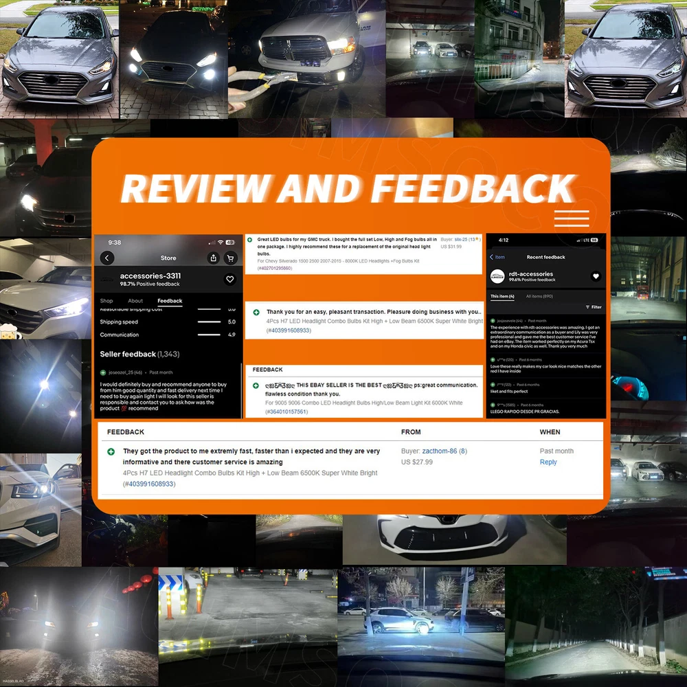 Product Advantages: 9005 (High Beam) + 9006 (Low Beam) High brightness High temperature resistant High purity of luminescence Good stable performance Built-in Driver Ballast Instant on fast cooling Energy saving environmental Long lifespan(>50000hr) Interchange Part Number: Use for high Beam, Low Beam, DRL or Fog Lights… LED Type: 6Pcs Led Chips Each Bulb Other Part Number: 6000K (Xenon HID Pure White) Head Light Lamp Bulbs Beam Angle: 360 Degrees Placement on Vehicle: Left, Right, Front Color: 6000K (Pure White Color) Condition: 100%Brand New/ Never Used Need additional Parts or Modification? 100% Integrated Design, Plug and Play. (Few vehicles may require load resistors to stop flickering or fix error message) Package include: 4x LED Headlight Bulbs 9005 (High Beam) + 9006 (Low Beam) Features: 1.Each Bulb have 2 sides of Super Bright LED Chips 2.Complete Kit: No Other Ballast/Driver Required Just Plug and Play - Newest Technology 3.Beam Angel: 360 Degrees 4.Color Temperature: 6000K Pure White 5.Smart Efficient Cooling System, Fast Heat Dissipation 6.High quality Aluminum heat dissipation ensures the secure temperature range 7.Low Power Consumption than Halogen bulb or Hid Kit, Energy Saving 8.Low Voltage Protection, High Precision Constant Current driver Chip 9.Shakeproof and Long lasting up to 50,000 Hours. 10.Easy installation, Plug and Play, NO modification required 11.Operating Temperature: -40°C ~ +80°C Automotive LED headlamps advantages: 1. LED lights than traditional halogen energy, more power. 2. Xenon lamp brightness and proximity , but the LED lights light up without delay, to enhance road safety. Instant start no strong currents impact , effectively protecting the car comes with a battery , improving battery life of more than 30%. 3. Fast cooling , the appearance of the most advanced design , thermal structure ingenious and reasonable. Less warranty, power driver with wide voltage constant current mode , the car can respond to a variety of voltage instability , the effective protection of normal use Led efficient and simple structure . Fewer Components damaged, repair the probability is very low , compared with HID ballast repair lower than 80% . 4. Heating temperature is low , protect the car . Xenon working temperature up to 800 ° -1000 ° , the main reason for the car ignition . 5. LED car headlights simple structure, fewer parts than xenon lamps, significantly lower than the xenon lamp failure rates ! 6. Automotive LED headlamps color temperature balancing. The Xenon bulbs in the same color to clear , about 6000K-6500K. Install Caution 1. As a safety precaution, make sure that the car has had time to cool down properly before starting the installation process. 2. Put the vehicle into park or make sure it is securely in gear. 3. Make sure to have the ignition turned off and the keys removed. 4. Be careful to avoid burns, especially when turning on or off the vehicles lighting. 5. Be careful to avoid crushing or cutting the bulbs. Also make sure to not touch the bulbs with your fingers, as this will cause blotting. 6. Fully examine the connection of the contact points, ports and the wires as faulty connections can cause lighting problems. 7. Make certain that the end of the bulb does not come in contact with the interior light shield of the headlight when adjusting the bulb. Brand New High Quality with Reasonable Price Fast Ship from KY or CA within 1 business day Tracking# Is Available With Free Shipping 60 days money-back guarantee & free return