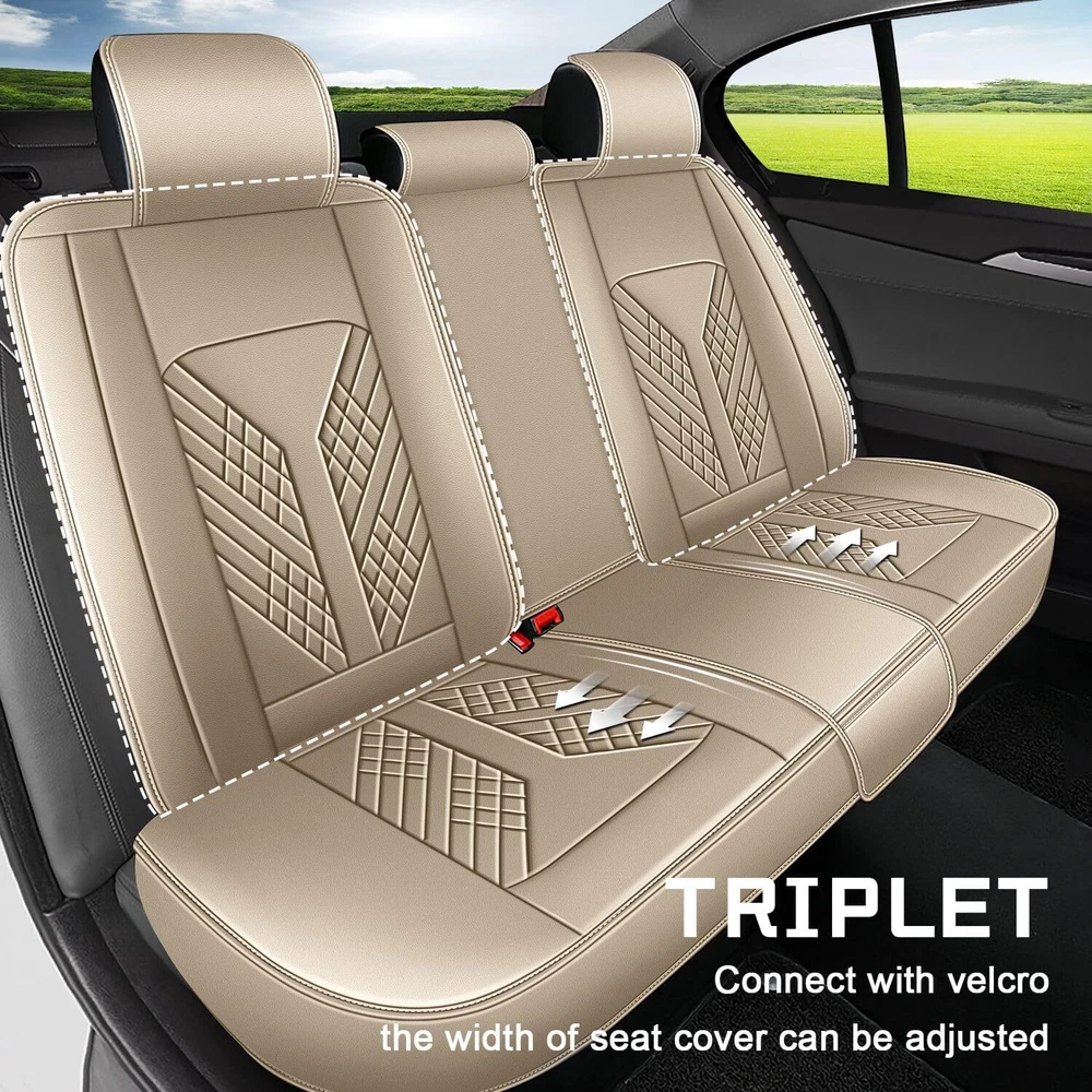 Notices: All the pictures have been professionally corrected, but due to the different ambient light and different display device settings, there may be some deviations in the pictures and items you see, please understand! Features: Universal fit for 5 seats,a full set of item include 2 Seat Cover, 1 Rear Seat Cover(3pcs separated), 5 headrest covers. Car seat heating, ventilation, seat belt buckles, airbags,cup holder,back seat 40/60 split work as normal after install. The front seat covers have back storage pockets for keys,phones and magazines. Stylish design and eco-friendly material, made from PU Leather: soft, smooth, durable and breathable. Much more durable and comfortable than most similar products out there. Improve the look of your car on the spot with these covers. Wear resistant and waterproof for car seat covers, no color bleeding. Very Easy to install: package comes with installation instruction in paper, please contact us via message to get video of instruction. Specification: Type: Car Seat Covers Color: Beige Material: PU Leather Range of application: 5 sits cars, all seasons Fitment: Fit for Honda Accord 2007-2017 Package included : 2* Front Seat Cover 1* Set of Rear Seat Cover 1* Bag of Accessories for installation On Nov 14, 2024 at 22:03:46 PST, seller added the following information: