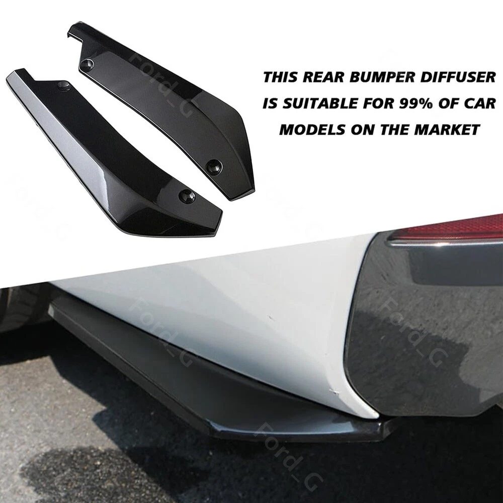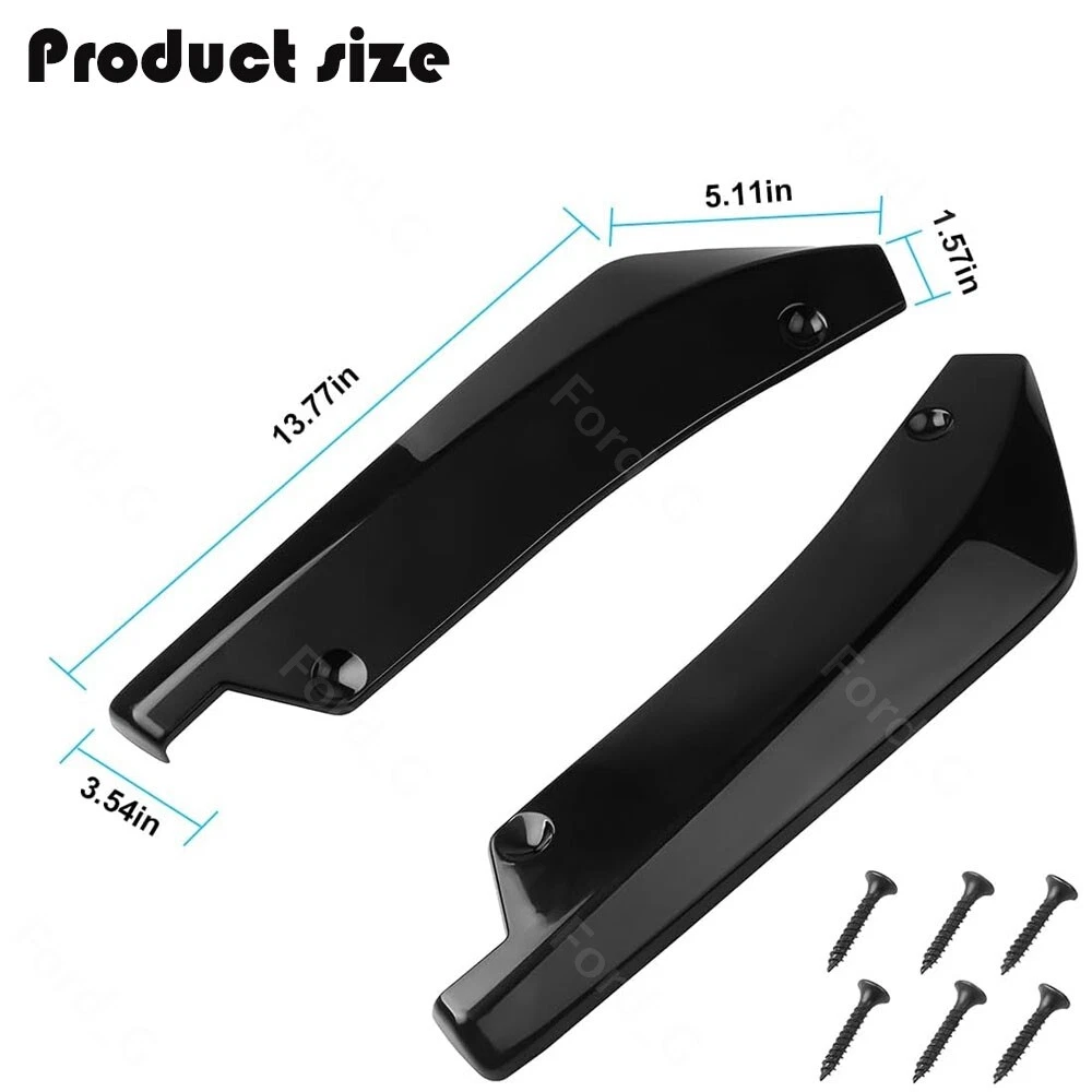 Specifications: Condition:100% Brand New Material:Polyurethane (ABS) Placement on Vehicle:Front, Left, Lower, Rear Color:Glossy Black Features: - Bold and aggressive,eye-catching design. - UV-resistant protect against fading. - Designed to fit each vehicle make and model. - Easy to install,no modification needed. - Gives your truck or SUV improved protection against scratching. Note: 1.Please allow 1-3mm deviation due to manual measurement. 2.Please understand that the pictures might be slightly different from the real product because every monitor is not calibrated same. Package Included: 2pcs Rear Bumper Lip(Accessories included)