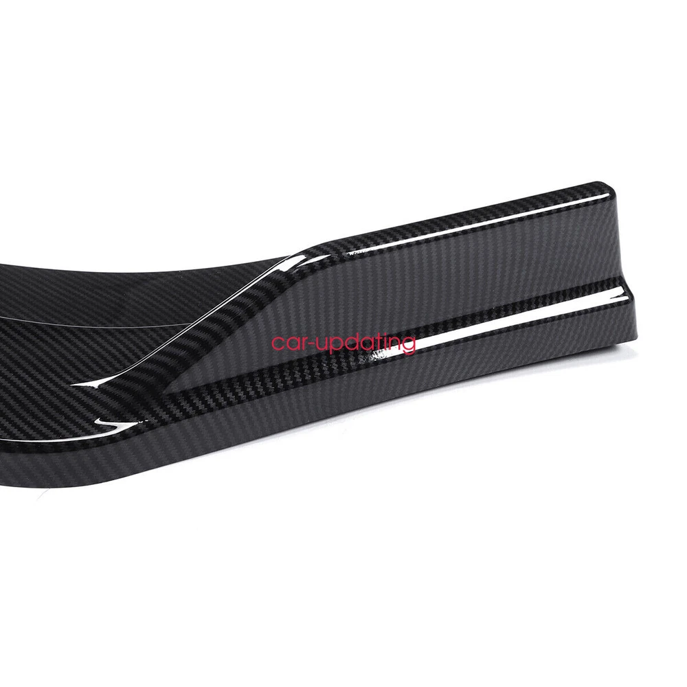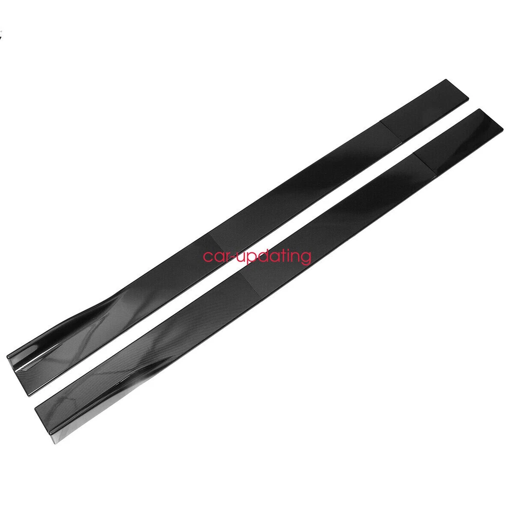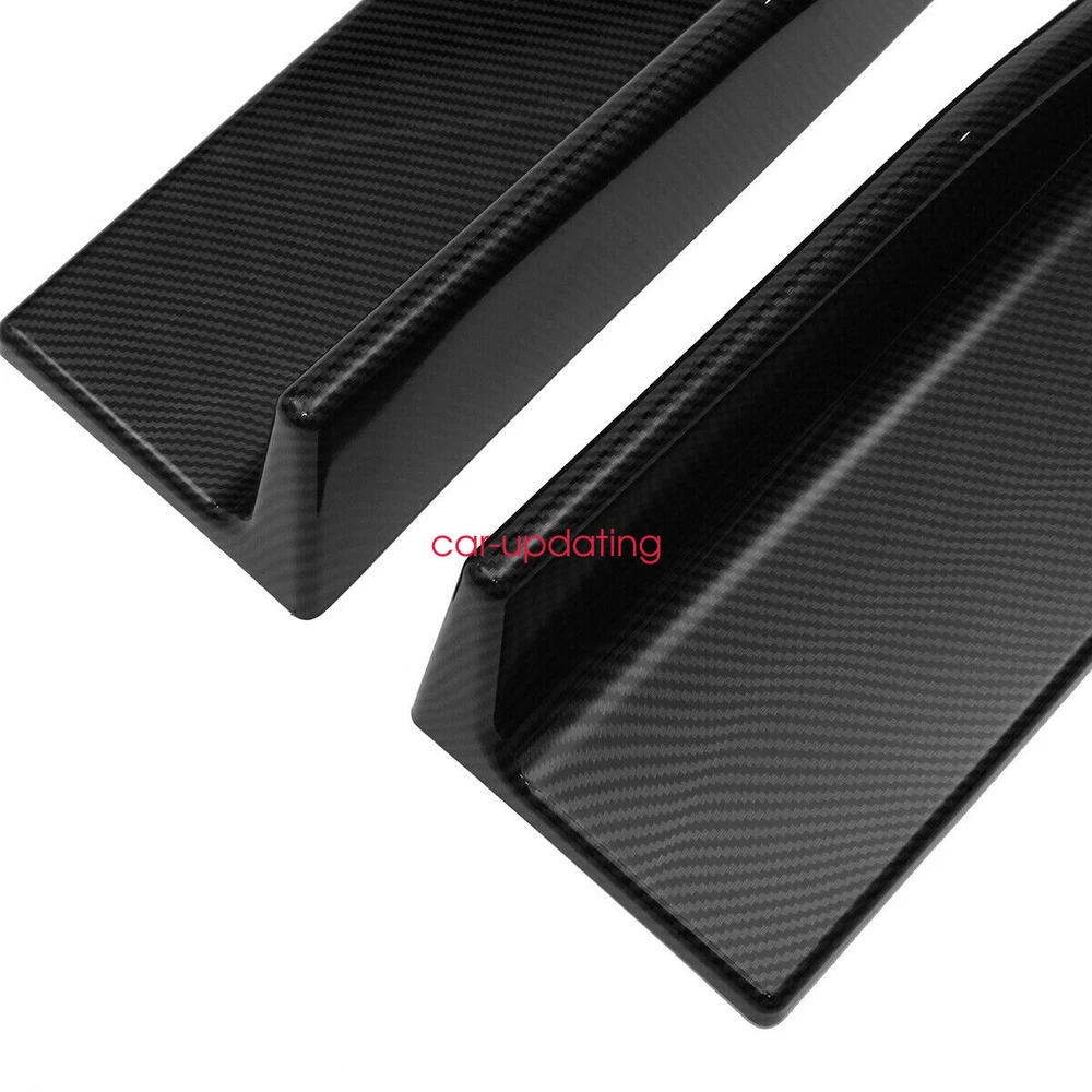 1.Front Bumper Lip Body Kit Spoiler Feature: Made of Updated durable and sturdy ABS plastic, adding stiffeners, no deformation in long-term use. Longer and wider than others. Provide an elegant and personalized appearance. Prevent the car from being scraped and improve the level of the decoration of the car. Adjustable angle, suitable for most models of Cars. Come with 2 blocks, More convenient installation, and stable adjustment. This is a set(4 pieces) front bumper cover lip front spoiler ***Instruction Not Included, Professional Installation Is Highly Recommended Specification: Type: Front Bumper Lip Body Kit Spoiler Material: High quality ABS Polyurethane Color: Carbon Fiber Look Weight: about 3.5 lbs Placement on Vehicle: Front; Lower Protection: The sturdy materials of this front bumper lip can reduce damage and prevent the car from scratches. Advantages: 1.Prevent the car from being scraped and improve the level of the decoration of the car. 2.Reduce the wind resistance and disturbing effect. 3.Give 3D visual effect, Provide an elegant and personalized appearance Require: Product will require drilling holes into the bumper and/or lip/diffuser to attach safely to the vehicle. - It's does not fit the car has a curve underneath by the back door.our item is straight. 2.Side Skirt - Type: Side Skirt Extensions Splitters Diffuser, Side Skirt Extensions - Material: ABS - Color: Carbon Fiber Look - Length Size: 2.2m(86.6'') (Make Sure 2m Length is the size you want!!!!!!!!!!!!!!!!!!!!!) - Placement on Vehicle: Left & Right Feature Improve the appearance of the car, enhance the protection, and make the car stylish and cool Using matching bolts for easy installation(Screws and instruction are included). It requires drilling holes to attach the side skirts stably to the vehicle. (Application of double-sided tape may provide more stability and is very highly recommended. However, the double-sided tape is not included. ) Product may be trimmed to accommodate vehicle's side skirt length. ( Please measure your vehicles length before purchasing. ) Package Included 1 x Front Lip Chin Bumper Body Kits Pair of 2.2m Side Skirt Extensions (L&R) 10 x Screws