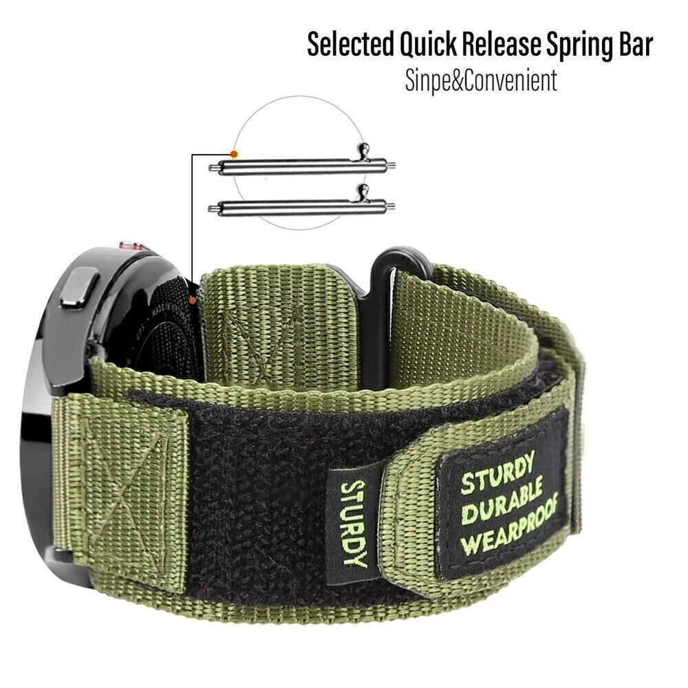 For Huawei Watch 4 3 GT 4 3 2 2e GT 3 Pro Runner Military Nylon Loop Band Strap Description Nylon Sport Military Watch Band For Samsung Galaxy Watch Straps For Men Quick Release Quick-Drying 20MM 22MM Product Specification: Band Material: nylon Buckle Material: alloy A high quality nylon made watch band with a quick release design, installing it can be done quickly without any tools. If you are a sports enthusiast, I highly recommend you to buy one of this watch band, high quality nylon has many advantages, such as soft, breathable, quick-drying properties, more importantly, the straps can hold the watch firmly on the top of the wrist and provide good comfort, this is a watch band made for sports Package Include: 1 x bracelet(not include the watch)