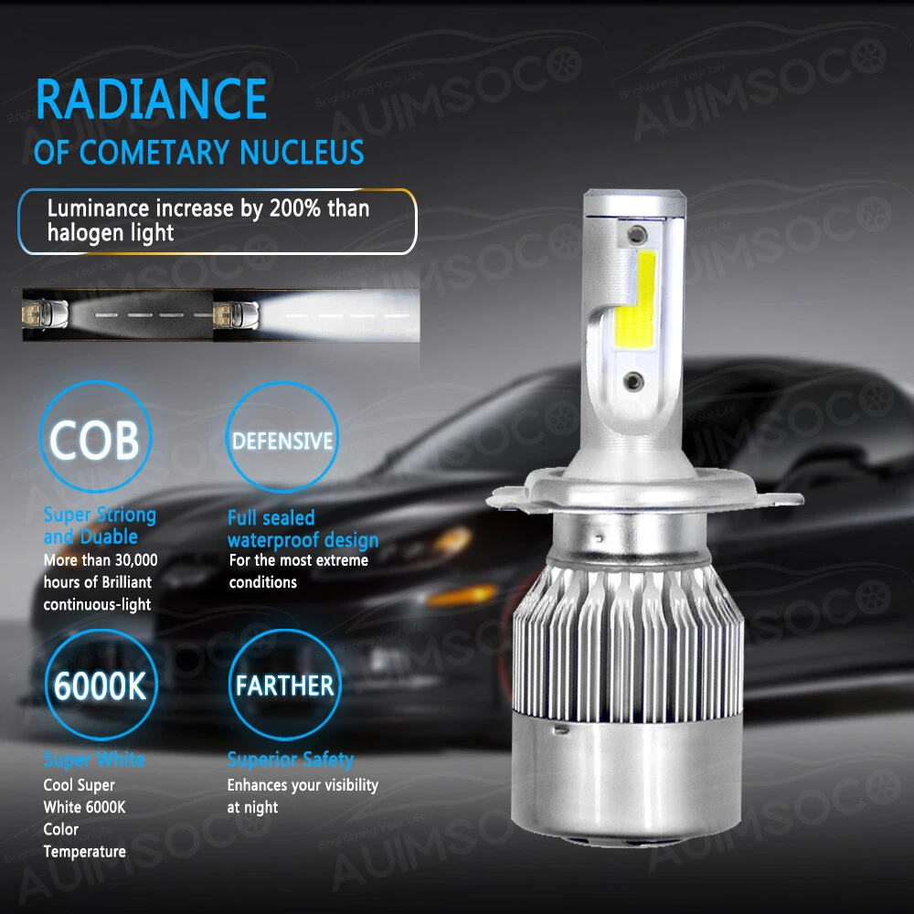 Store Categories Store Categories Other Details Description: Model: 9003 H4 LED headlight bulb Voltage: 12 volt Size: H4/9003 Color: 6000K (ultra white) Construction: Aluminum alloy/Polycarbonate/synthetic rubber High efficient cooling Fan: Yes Driver: Internal Canbus Driver: Yes (may work with CANBUS vehicle) LED chipset: COB Life span: <50000hrs LED light emission style: 2 sides operating temperature: -40~60C Package Included: 2x 9003 H4 LED Car Headlight Bulbs C6 Shipping Policy Payment Method Returns Policy Shipping Policy Payment Method Returns Policy Copyright©2017 DataCaciques Details Welcome to AUIMSOCO Authorized Store on eBay We sell all kinds of LED bulbs for high beams, low beams, fog lights, turn signals and so on. Description: Fog lights not included in this package! Model: 9003 H4 LED headlight bulbs Voltage: 12 volt Size: H4/9003 Color: 6000K (White Light) Construction: Aluminum alloy/Polycarbonate/synthetic rubber High efficient cooling Fan: Yes Driver: Internal Canbus Driver: Yes (may work with CANBUS vehicle) LED chipset: COB Life span: <50000hrs LED light emission style: 2 sides operating temperature: -40~60C Package Included: 2x 9003/H4 LED Car Headlight Bulbs C6 Shipping Policy Payment Method Returns Policy Shipping Policy NOTE: We will ship item locally for US buyers. Usually for US buyers it will take about 5-7 business days to reach. If you don't get it, please contact us firstly, we'll try our best to support you. For US customers, all items will be shipped out within 1-2 business day with cleared payment. Please included your phone number to the payment note for prompt and secure shipment. Tracking numbers for all orders are added to eBay once they have been dispatched; please login to eBay to find the tracking information for your order. Payment Method Instant PayPal payment is the preferred method of payment. We also accept payment via PayPal, DebitCard, Visa, MasterCard, Discover. We will only ship to the confirmed PayPal shipping address given with the payment. If you want to ship to other address, please change your PayPal shipping address before you make payment. To avoid initiating an unpaid item claim, please pay within 7 days Returns Policy 1. Customer satisfaction is our top goal. We believe our items are so outstanding. All products are quality checked. They are new and in good condition when shipped to our customers. We are convinced you will be happy with your Purchase. 2. Please contact us first if you have any problems/questions/concerns. We will be happy to resolve any issues you may have in a cordial and friendly manner. 3. We appreciate your Postive Feedback, and will do the same in return. DO NOT leave negative feedback without first communication with us. Please allow max 2 business days for us to response.