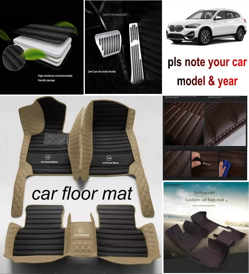 How to place an order: Before you place order, please reading following notice to offer you a good service. 1.When you place an order, please leave a message to tell us(Such as 1.1 and 1.2 formats), We will make mats according to your requirements. 1.1-format: car model, year of make and the floor mats color your need ? Format ? Brand + Model + Struct + Year of Make + Color e.g.: Jeep + Compass + 4-door suv + 2024 + Black ? 1.2-format: Use VIN? Vehicle Identification Number? *17 character limit, not case sensitive. The letters O, I, and Q never appear in a VIN. e.g.: 4GBB 5GB6 AA12 3456 7 (^_^ Type in your VIN or upload a photo of the barcode ) VIN Search Index: 1.2.1. It's best to use the barcode on your vehicle's driver's side door jamb. 1.2.2. But if it's not there, look under the driver's side windshield. 1.2.3. If the barcode is unclear, include the VIN digits. 1.2.4. The VIN can also be found on your registration card. 2. For Left Hand Driver CAR only; If your car is RIGHT HAND , Please contact with us before you place order 3. Please write Remark your car model and year When you place order. 4. items large volume, items need to be folded or rolled up, it may have a slight wrinkle, please understand! Please Notice: 1. Different car for different mat, so please check your car model, years or floor shape , to make sure the floor mat fits your car correctly; 2. All the listing are for the left hand cars. If your car is RIGHT HAND , Please contact with us before you place order, will customize it for you; 3. If you have any issue about the mat, please feel free to contact with us and tell us your car model and years ,we will confirm it for you. Features: 1. Laser scanning special custom, Standard edition, Not block the throttle, Safe driving. 2. Environmental-friendly leather. 3. 6 mm thick elastic sponge. 4. Excellent manufacture process. 5. Environmental-friendly anti-slip XPE material. 6. colors: beige, black, brown, coffee, gray, red... NOTE: Please allow 2-3cm differs due to manual measurement, thanks. Due to the difference between different monitors, the picture may not reflect the actual color of the item. Please understand, Thank you! At tention: 1. Your valid phone number is very necessary for the shipping, otherwise we can't guarantee that the package would safely arrive. 2. Any Customs tax applied to this package should be covered by buyers.