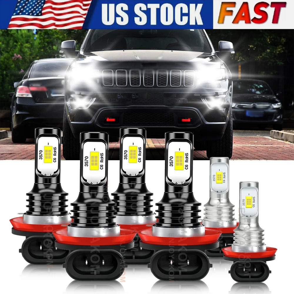 For Jeep Grand Cherokee 2019 2020 2021 LED Headlight Bulbs High Low + Fog Lamp