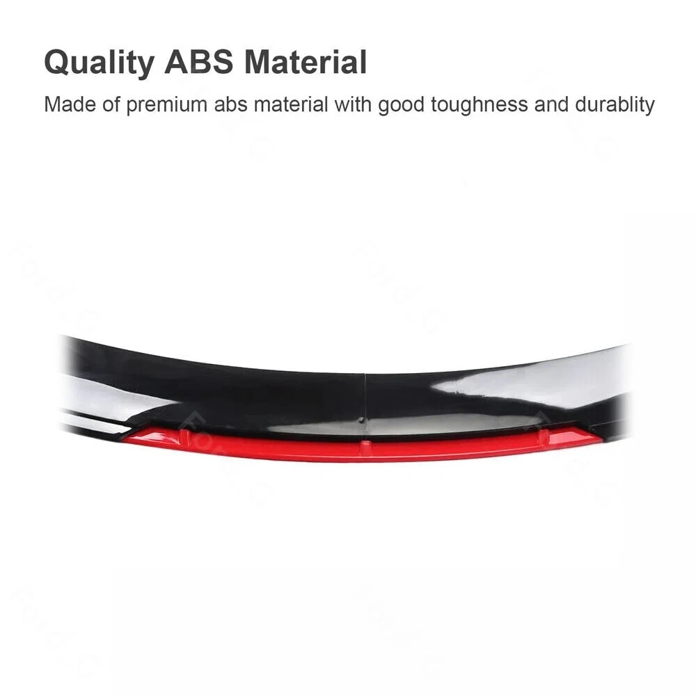 Description: Front bumper lip body kit spoiler: Material: ABS Color: Glossy Black+Red Placing on the vehicle: front Splitter Rods: Color: Glossy Black Material: stainless steel Length: 20cm Location: This delicate and compact joystick is mainly fixed to body components (front and rear walls, skirts, head, and tail lips), and can also be installed on the car center console or interior panel. Features: Made of updated and durable ABS plastic, with added reinforcing ribs, it will not deform after long-term use. Longer and wider than others. Provide an elegant and personalized appearance. Prevent the car from being scratched and improve the decoration level of the car. With screws, installation is more convenient and stable. Contains instructions, highly recommended for professional installation* Packaging included: 1 * Front bumper spoiler cover lip 2 * Splitter Rods