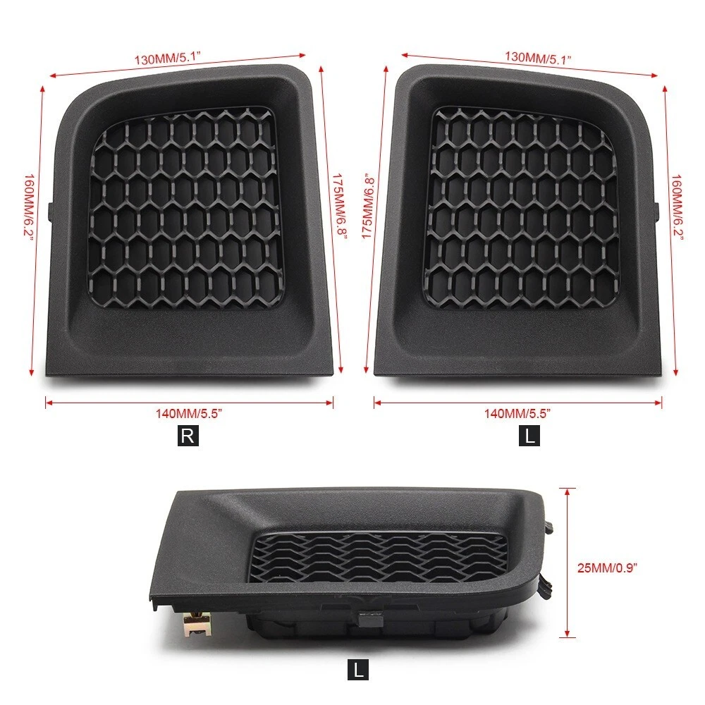 For Jeep Renegade 2015-2017 Left & Right Front Bumper Lower Grille Bezel Covers CRP3955 Descripción 1. Rejilla de reemplazo de ajuste directo. 2. Instalación directa, sin recorte requerido. 3. Material: plástico. 4. Se adapta a Jeep Renegade. 5. Posición de instalación: izquierda + derecha