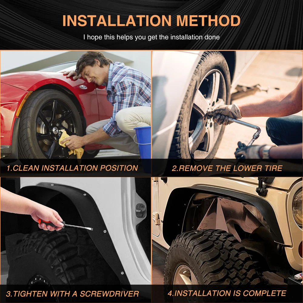 For Jeep Scout Car Flexible Wheel Extend Fender Flares Molding Trims Mud Guard Material: PP Features: MAXIMUM PROTECTION & TIRE COVERAGE – The universal Fender Flares are fast, easy way to give your truck an aggressive, off-road look and stay legal! FAST & EASY INSTALLATION – Just 3 easy steps and you’ll extend your fender trim by up to 2 inches! ENDURES ALL CLIMATES & WEATHER – Fender Flares will help protect your paint from rocks and dirt. EXTENSIVE COMPATIBILITY – It is allowed to be installed on virtually all makes and models. Delivery contents: 4 pieces, 1 mounting kit. Your order will be shipped within 1 business days ( Excluding Weekends and Public Holidays)after your payment clear. * We only ship out within US. Domestic Packages are shipped via Standard Delivery from our stock in Walton, KY, US. * Item will be delivered within 1 - 6 business days in US. We ship to Paypal confirmed address ONLY. Please make sure your address in PayPal is matched with your shipping address before you pay. * We do not offer in store pick up and return service. Regardless of response, buyer can return item within 30 days and get a full refund. Item must be returned in good condition in original packaging, not damaged, not stained, no cut.