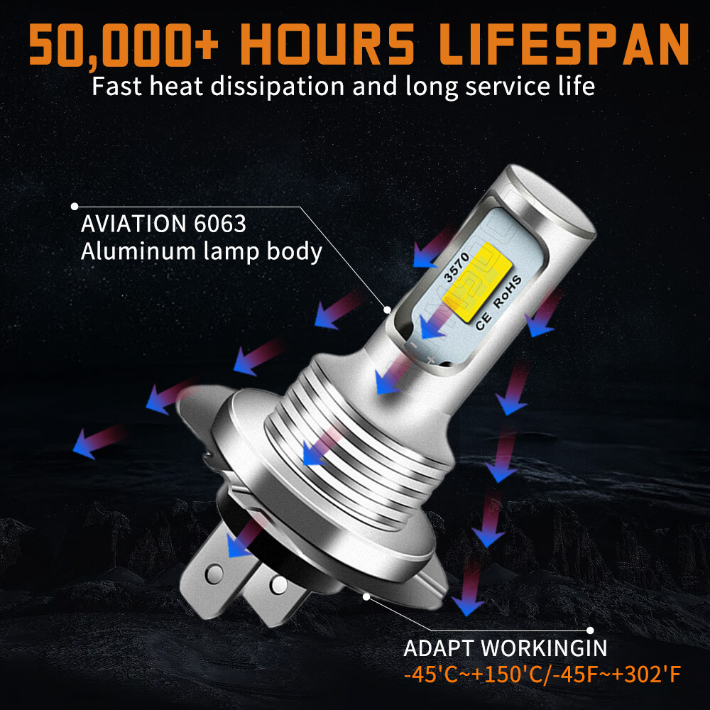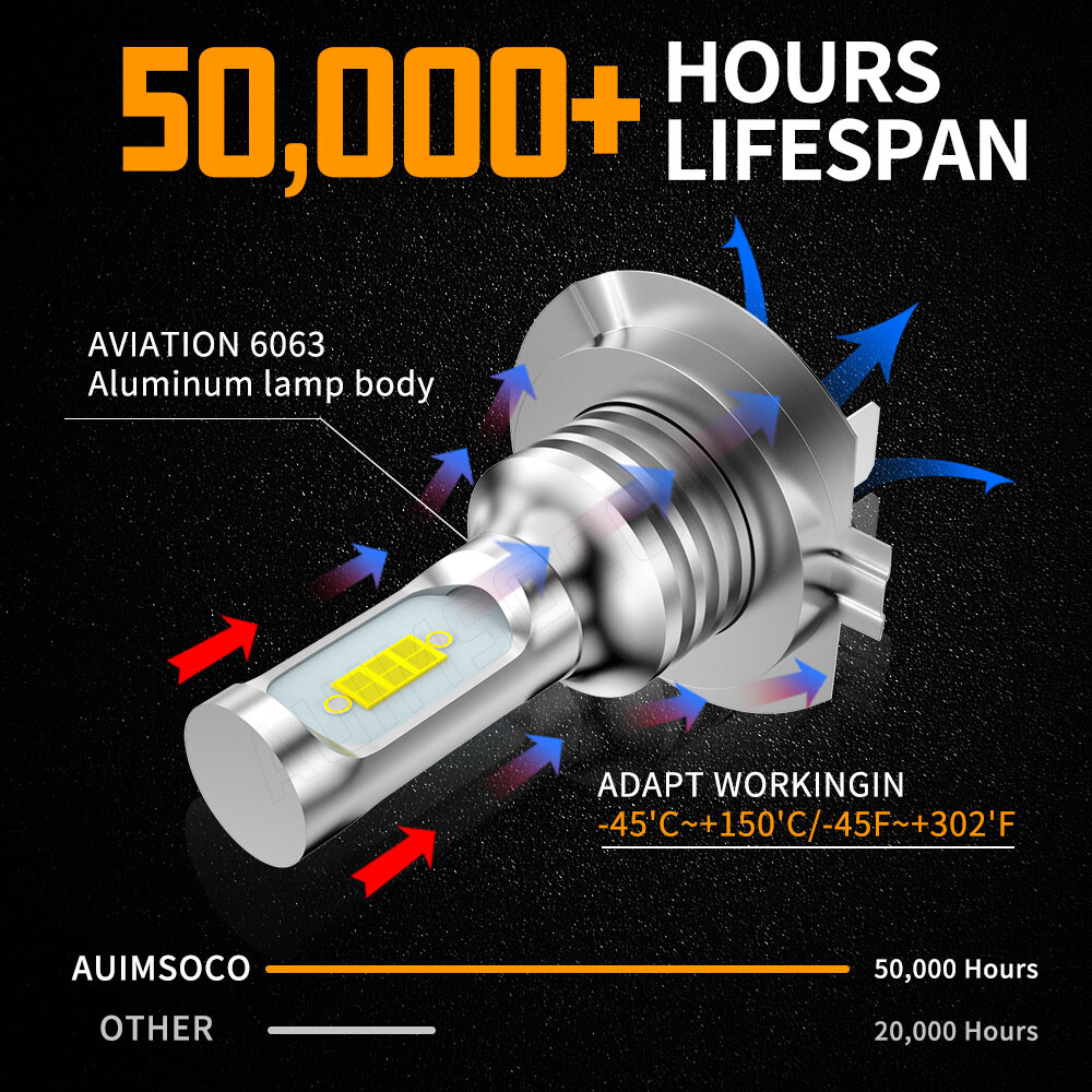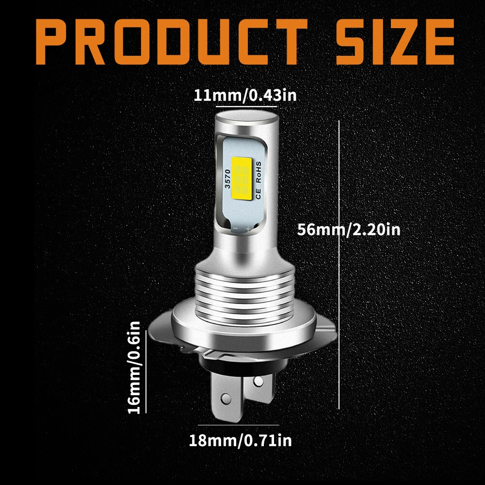 Specification: Plug Type: H7+H7+H11(H8),High low Beam +Fog Light Power(per set): 480W/Set LED Quantity(each bulb): 6pcs* LED chips Luminous Flux: 360000lmt(6000lmlb) Operating Voltage: DC 9-32V(fit 12V,24V vehicles) Color Temperature: Pure White 6500K Waterproof rate: IP68 rated water and dust seal Lifespan: Over 50000hrs lifetime Beam Angle: 270 degree@low beam,360 degree@high beam Material: Aviation 6063 aluminum profile Operating Temperature: -20-80 degree Celsius Usage: headlight+fog light (2pcst)H7 H7 H11 LED Hi-Lo Beam +fog Light LED headlight + Fog Light conversion kit Latest LED chip(USA) light source,2 luminous faces no blind zone 300% brighter than original halogen bulbs Soft White light in solid beam pattern, will not dazzle on-coming traffic. Xenon white light reflect road paint/signs better to show clearer road situation during night driving 270 degree low beam angle with cut-off line,will not dazzle oncoming traffic All-in one heat conduction+high speed mute fan system keep the light bulb in appropriate working temperature Built-in constant current CPU, instant full brightness without start-up relay 600% BRIGHTER THAN HALOGENS: The H7 H7 H11 led headlight + Fog Light provide up to 600% more light with a 6500K cool white clearer color. This is 6 times brighter than your original halogen bulb. PERFECT BEAM PATTERN: The ultra thin design makes the chips of our H7 H7 H11 led bulb much closer for a Super-Focused beam, delivering wider angle and farther range light on the road. No glare to oncoming traffic, and no dark spots ensure a safer drive. Easy To Install Almost 1:1 mini design as halogen, easy to install in 10 minutes without any modification. Two-way heat dissipation channel Package Included: 2x H7 LED Headlight High Beam Bulbs 2x H7 LED Headlight Low Beam Bulbs 2x H11 Fog Light Bulbs On Nov 12, 2024 at 19:02:39 PST, seller added the following information: