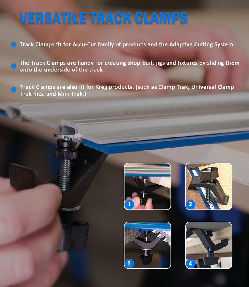 For Kreg Track Clamps Fit Accu-Cut Saw Guide Clamp Trak Mini Trak KMA7520 2PCS Versatile Track Clamps: Track Clamps fit for Accu-Cut family of products and the Adaptive Cutting System. The Track Clamps are handy for creating shop-built jigs and fixtures by sliding them onto the underside of the track where additional holding power may be needed. Track Clamps are also fit for Kreg products. (such as Clamp Trak, Universal Clamp Trak Kits, and Mini Trak.) Clamps for Woodworking: These easy-to-use track clamps lock into place on the underside of the track extensions and Starting Block to offer additional holding power when needed—such as when working with slick-surfaced sheet goods, or when cutting with a single length of track. Features: KMA7520 Track Clamps Work for Kreg multiple kinds of tracks,Track Clamps are great for making shop fixtures. Kit Includes: (2) Clamp Bodies, (2) Mounting Bolts with washers, (2) Threaded Knobs, (2) Knurled Locking Nuts. Satisfaction Guarantee: If you're not satisfied with the tool, simply return it for a full refund in 60 days.If you have any questions, please feel free to contact us and we will reply you as soon as we can. 1. Payment methods accepted: Payoneer. Our payoneer account allows you to pay by credit card, debit card and your paypal balance. 1. We ship items to Your ebay address.Please make sure your ebay address is correct before you pay, cause it cannot be changed once the order shipped out. 2. All of our items are shipped from our Warehouse in USA. 3. Please feel free to contact us by ebay "Contact member" if you cannot get your order on time. 1. Return to us within 60 days from the delivery date for exchange or refund. Refund will be given as Money back or item exchange (buyer's choice). 2. Return shipping fee is the responsibility of buyer unless the return is a result of our mistake. And all NON-seller mistake returns for refund are subject to 20% re-stocking fee. 3. If you need return, please contact our customer service representative, let us know the detailed problem and send us some pictures for confirmation. 1.Please contact us via ebay using"Contact member". We will respond within 24hours or less.Thank you for your understanding. 2. We maintain high standards of excellence 5-stars and strive for 100% customer satisfaction! Positive Feedback is very important to us. 3. Pls contact us first before you leave Neutral or Negative feedback. We will do our best to solve the problem, thanks!