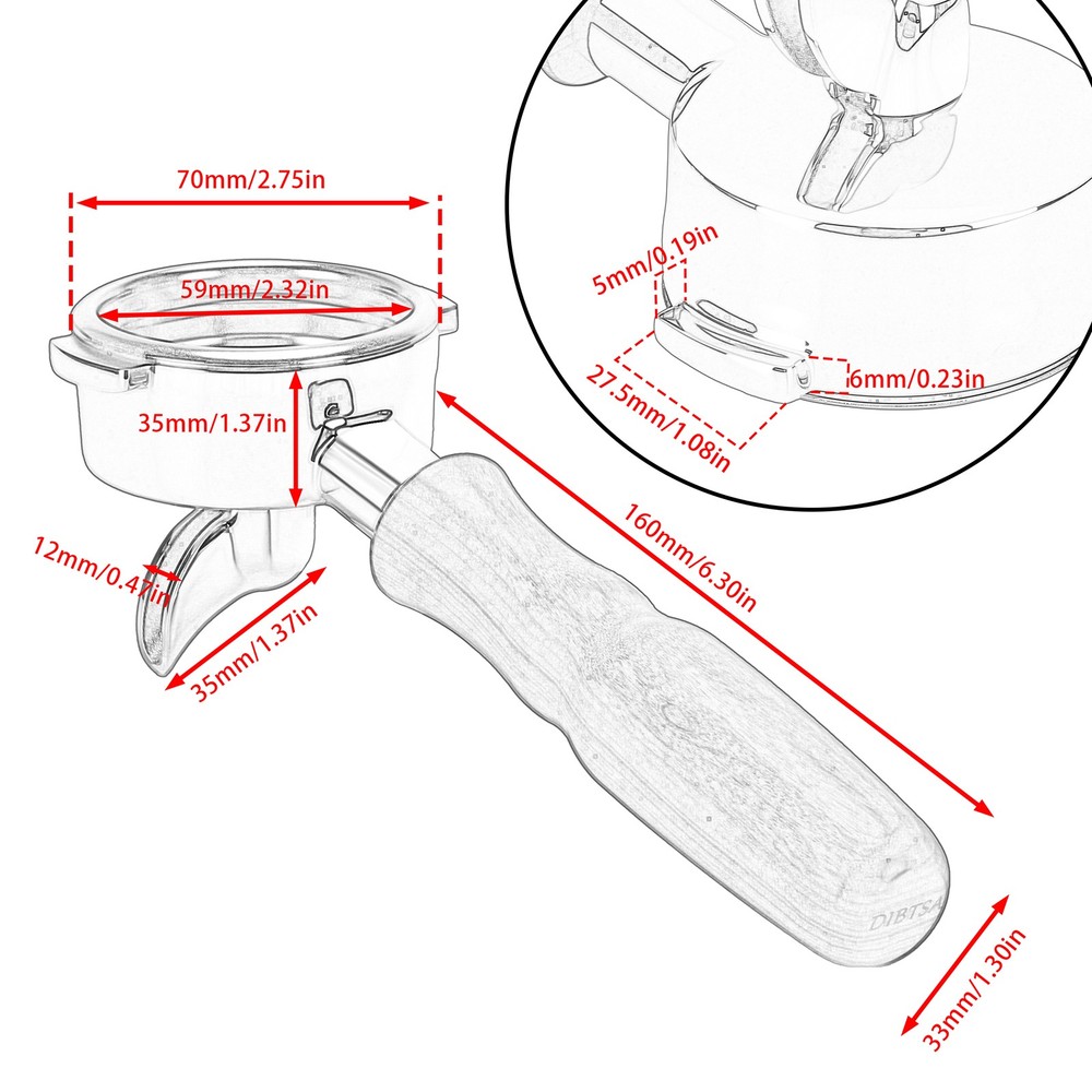 UPC:Does not applyNumber in Pack:2Suitable For:Espresso Machine, Espresso Maker, Filter Coffee MachineBrand:DIBTSACountry of Origin:ChinaManufacturer Warranty:3 MonthsCompatible Brand:For La MarzoccoType:PortafilterMaterial:Stainless Steelgtin13:Does not apply