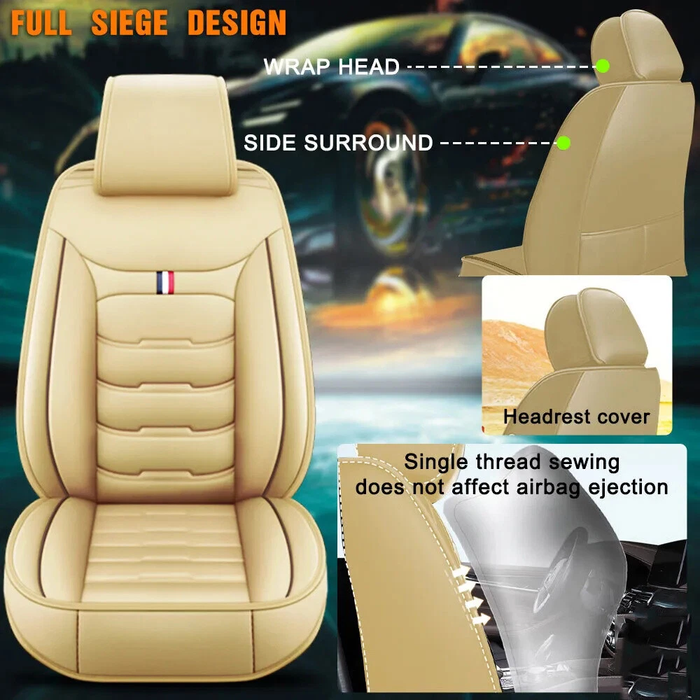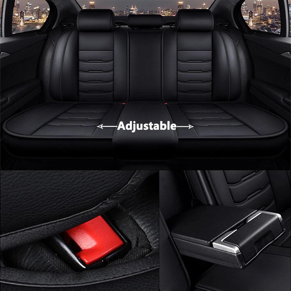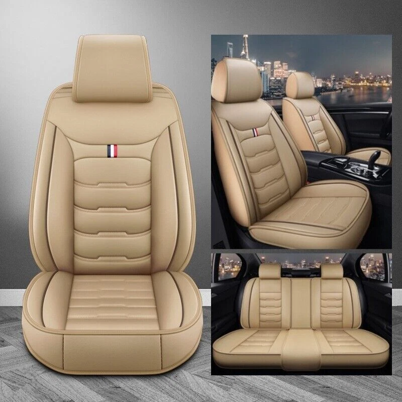 ๐ฏbest service ๐ฏ fast shipping ๐ฏ Resolve problems immediately ๐ ๐ ๐ ๐ if you have any questions ,just contact me though ebay emails,we will help you to solve. ๐ ๐ ๐ ๐ Package Included: 2 *Front Seat Covers + 2 *Front Headrest Covers. 2* Rear Bench Cover(size could be adjustable) 1* Rear Backrest Cover 1* Armrest Cover( Detachable) Some Round Plates for Install. if you need other color ,just clike buy it now Features: Premium PU leather, breathable and wear resistant. Soft touch and easy to wash with wet cloth. Airbag compatible and seat belt buckle reserved, no deploying block, enhance your driving safety. Full surround design, better protect your car seat against dirt, spills, stains, crumbs and pet hairs. Big content bag to enable storage convenience, keep your car interior clean and tidy. Detachable armrest cover, free to install and take off, practical to use. Adjustable and detachable rear bench, free to fit different seat sizes. Universal fit most 5-seat cars, SUVs, trucks and vans. Specification: Material: PU leather Fit:Universal fit 4 Season use Package Included: please select from the drop menu , thanks Notes: Please allow 1-3cm due to the manual measurement. There might be slight color deviation due to different displays. Please check the size of your car seat before purchase.