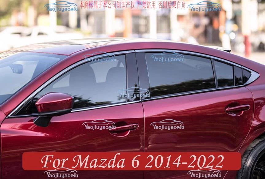 For Mazda 6 2014-2022 Steel Black Chrome Side Window Molding Cover Trim 10pcs Description Fitment : Fit For Mazda 6 Sedan 2014 -2022 Specific Condition : 100% Brand new Color: Black Chrome Include: 10PCS (1set ) Material: Made of High Quality Steel Easy installation,If you cannot install it, it is recommended to ask professionals to install it Strict Factory QC test ,High Quality guarantee Made in an ISO 9001 facility to ensure good quality Features 1. 100% brand new and high quality guaranteed 2. Decorate your car charming luxury vivid 3. Easy to use and to operate at affordable prices 4. Perfect cover that is useful,helpful and so practical 5. Easy to use and to operate Please check and confirm this things fits yours before buying. The picture has been processed by PS and may be a little different from the actual product. Please refer to the actual product received Installation Clean surface and remove any dirt, oils before attaching decal. Place decal on a hard smooth surface. (front side of decal facing up) Slowly peel off the back sheet off the decal. (make sure do not let any water or dirty get on the back of this decal) Slowly apply the decal to the smooth surface you like. (Keep it slowly to avoid any air bubble) Please keep it dry in 24 hours. Notice: Cause the same car model may be differently produced in different country.Please check and confirm this things fits yours before buying.Please ensure the part of your car like our picture shows, or it will not fit, if any differeces, please contact with us before purchase, thanks! If you need more products of this model, please find or contact us in our shop, thank you for your patronage! !