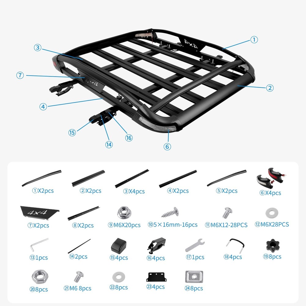 For Mini Cooper Aluminum Top Roof Rack Cargo Carrier Basket Holder w/ LED Lights Material: Aluminum Features: Integrated Lighting System : Features two bright white LED front lights for road illumination and two red brake lights at the rear that activate during braking, enhancing nighttime safety. Durable Construction : Made of double-layer thickened aircraft aluminum with a 200 lbs capacity, offering rust-proof, corrosion-resistant, and lightweight properties for improved fuel efficiency and easier installation. Streamlined Design : Aerodynamic profile effectively reduces wind noise, vibration, and drag. Its curved contour seamlessly integrates with modern vehicle rooflines. Built-in Adjustable Cross Bars : Includes two 130cm adjustable crossbars compatible with raised roof side rails (>2.5cm thick), forming a complete roof rack system for direct installation. Easy Installation : Designed for simple assembly and mounting on cross bars using universal U-bolts (professional installation recommended). Wide Applicability : Offers versatile external storage for luggage, camping gear, or bulky items, fitting various vehicles including sedans, SUVs, trucks, and vans to meet diverse transportation needs. Delivery contents: 1 Basket, 2 Cross Bars, 1 Mounting Kit. Installation Notes( Cross Bars Required ) : If the vehicle lacks factory-installed cross bars , our provided cross bars can be installed only if the vehicle has separate roof side rails with a thickness exceeding 2.5cm . The roof basket can then be mounted onto these cross bars. If the vehicle already has existing cross bars , ensure their width does not exceed 7cm for proper compatibility with the roof basket. Processing & Delivery: Your order will ship within 1β3 business days (excludes weekends/holidays) after payment clears. U S domestic orders only. Shipped via Standard Delivery from Walton, KY. Delivery within 1β6 business days in the US. Note: Verify shipping address before ordering. In-store pickup & returns unavailable. Buyers can return items within 30 days for a full refund, no questions asked. Items must be returned undamaged , unstained , uncut , and in their original packaging . On Dec 16, 2025 at 09:34:43 PST, seller added the following information: