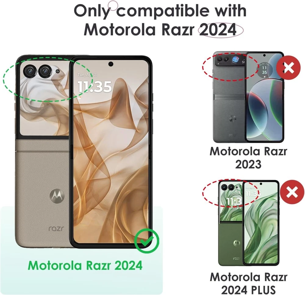 For Motorola Razr 2024 Case with Built-in Outer Screen Protector and Ring Holder Product Description : 【Compatibility】 This case is specially designed for Motorola Razr (2024 Released). Not fit Razr Plus 2024 & Moto Razr 2023. Not compatible with wireless charging. 【Portable Ring Holder】This Motorola Razr 2024 slim phone case is specially designed with a removable metal ring holder, featuring a high quality leather strap and sturdy stitching, ensuring you can carry it around with confidence, adding a sense of style and security to your phone. 【Built-in Screen Protector】This Motorola Razr 2024 ring case has a built-in tempered glass front screen protector to ensure touch sensitivity and high definition while preventing accidental scratches and drops. 【High Quality PC Material】While providing reasonable protection for the Motorola Razr 2024, the case is made of lightweight PC material that doesn't add bulk or weight to the phone and provides a good grip while being easy to clean. 【Perfect Fit】 Customized for your Moto Razr 2024, precise cutouts and holes, fits your phone buttons, charging ports and speakers tightly, not easy to fall off. What's In The Box: 1x Case with Ring Holder (Phone Not Included) We are committed to your satisfaction. If you are not completely satisfied with our product, we offer a 100% money-back guarantee. Top-Notch USA Seller | S wift USPS/UPS delivery | Shipped within 1 Business Day | Quick Replies | Free Shipping | Prompt Communication Contact us We value open communication with our customers. Our team is committed to providing quick responses to any queries or concerns you may have regarding our products or your order. Please feel free to contact us on eBay's Internal Message System for any questions or concerns you may have. Our dedicated customer service team is committed to providing exceptional support and ensuring your shopping experience with us is nothing short of excellent. Customer Service We strive to offer the best quality products to our customers. Each item listed in our store undergoes rigorous quality checks to ensure customer satisfaction. If you have any problems, we are very glad to help you. Please message us directly through eBay for faster response. Your inquiry is important to us and we'll respond within 24 Hr.