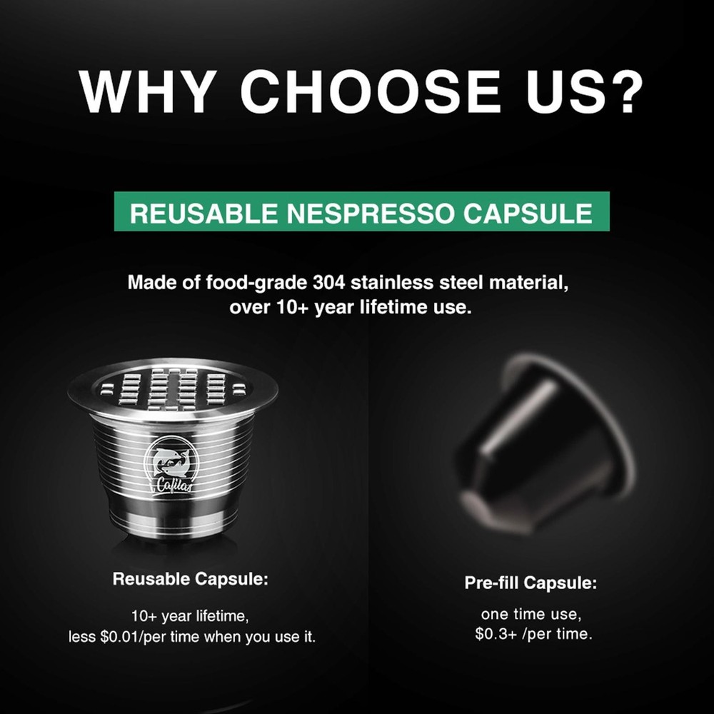 Description Description&Preview shipping&policy Description: describe: This coffee filter is compatible with Nespresso OriginalLine! Even inside your Nespresso machine, you can use bubble tea or hot chocolate. With these new reusable refillable capsules, you can save the environment while brewing their favorite coffee in the morning. feature: 1. Reusable, save money and save the earth. 2. Brew your own fresh coffee and make a difference in your life. 3. Reduce your cost, more than 10 years service life, less than $0.01/time when used. 4. Safe to use, made of food grade 304 steel, BPA free, lead free. 5. Easy to use, fill the capsule with coffee powder and put it in the machine, then you can enjoy a cup of espresso Compatible with Nescafé models for Nespresso U. for CitiZ ( Not Fit for D110 and Prodigio Krups ). for Pixie. for Le Cube. for Maestria. for Lattissima. for India. for Concept. Not compatible with the following models not for Dolce Gusto not for Nesspresso Essenza not for C30 Package includes 1*Coffee capsule shell 1*spoon 1*Brush Preview: Thank you for your purchase Problems? You can follow below process to chontact us. There is a time zone difference,but we will do our best to quickly response to your questions: Shipping ● We will arrange shipping for you within 24 Hours after payment cleared except the holidays. ● We always send the item to the address you give us on PAYPAL to ensure the security of the item. If you have changed your address, or want us to ship to another address, please change to the new address when you pay us with PAYPAL, otherwise we will not be responsible if the package is lost. Payments We accepts Paypal only If you have any questions about the payment,please contact us through eBay message. Import Duties In case some duty is due Upon delivery, it is your responsibility to meet that expense and this may cause delays to delivery schedule and you may have to pickup goods at the customs office. Terms & Conditions By bidding on this item,the Buyer agrees to all of the terms and conditions as outlined in this listing .please ensure to read and agree to All eBay terms and Conditions before bidding. All pictures are for illustration purpose only and Colours may vary slightly. Our store obeys all eBay Rules and Policies. Returns Policy To Return an item you must contact us and take photos of your item to clearly show any damage or unusual aspects of it. Approved returns will be subject to inspection on arrival. Items must be returned in original condition with all original packaging. All shipping and handing charges are non-refundable Return delivery costs are the responsibility of the buyer. We will cover the cost if sending replacement/repaired items. Within 7 days after receiving your products, we offers a no-hassle 7 day exchange/replace only if your items are found to be defective by manufacturer.