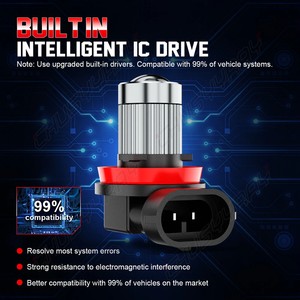 Our Product Advantages: High brightness High temperature resistant High purity of luminescence Good stable performance Easy installation, just plug & play Energy saving environmental Long lifespan(>50000 hours) Feature: Wider visibility & brighter light. With HD lens: focusing light, no dark spot. Built-in IC driver: constant current circuit design. Highly-efficient and reliable cooling system keeping the lamp running at optimal performance and ensures a longer lifespan lasting up tp 50000 hours. Almost 1:1 same size to halogen, perfectly fit for 99%+ vehicles without problems in installation. 1:1 same beam pattern: special light reflactor effectively simulates halogen lamp's beam pattern, which solves the problem of focusing unevenly and dark area problems. IP67 waterproof: Rain-proof design for driver ensures the bulbs work normally under the extreme weather. Perfect replacement for the halogen and incandescent headlamp, Easy installation about taking about 20 minutes according to the installation manual included. Specification: Brand: CHUSYYRAY Model: H11/H8 Voltage: 12-24V DC Color: 6000K white Lamp beads: 3570 CSP Chips Working Temperature: -40-80 degree Standard plug, non-polarity. Lifetime: >50000 hrs Waterproof: IP67 Warranty: 5 year Purpose: Fog lights, daytime running lights CANBUS ERROR FREE: No. For most vehicles, just directly plug and play. But for some vehicles with CAN-BUS system, decoder or load resistor may be required to avoid hyper flash or fast blinking. Note: Load resistors may still be required for very few sensitive vehicles. Please check your car manual or original bulb to confirm the bulb size, length is correct or not before purchasing to save your time. Package: 2x H11 FOG LIGHT BULBS On Dec 30, 2024 at 00:47:08 PST, seller added the following information:
